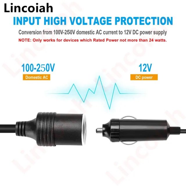 【WIDE COMPATIBILITY】Lincoiah 12V DC Car Cigarette Lighter Power Supply is Convenience to Use with 1.2M Extended Cord, Insert it into Any Power Outlet At Home, Use Any Electronic Equipment Has Cigarette Lighter Socket, Easy to Use AC to DC Power Converter Everywhere in Worldwide for Traveling/Camping.(***NOTE:Only works for devices which Rated Power not more than 24 watts.***)