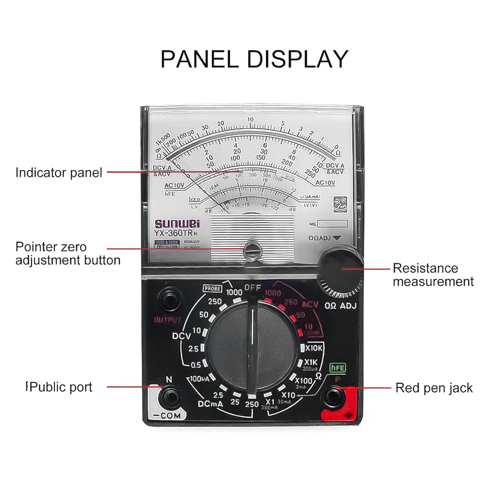 AC/DC 1000V Analog Multimeter Digital Volt-Ammeter Analog Multimetro Resistor Tester Electrician Multimeters Voltage Current Resistance Tester