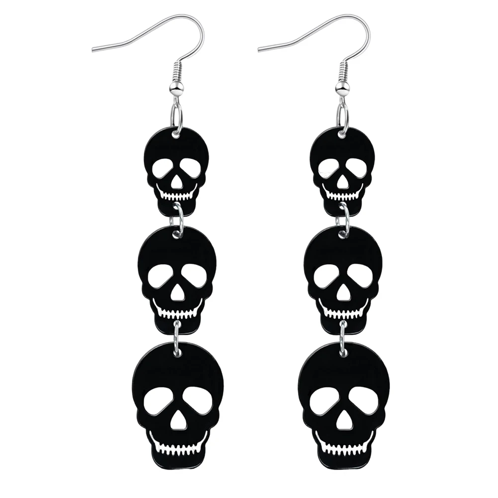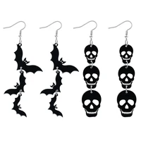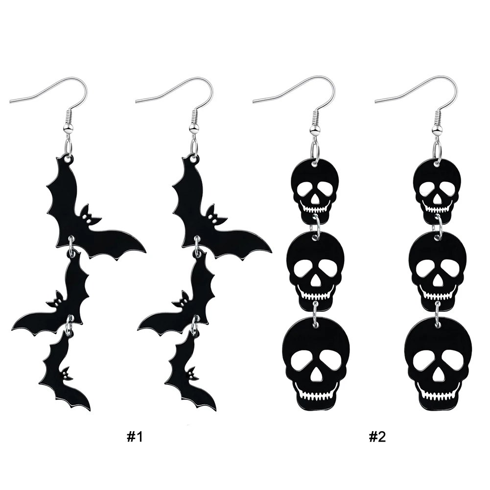 Acrylic Halloween Skull Bat Drop Dangle Earrings Multi-Layered Skull Stacking Earrings for Horror Jewelry
