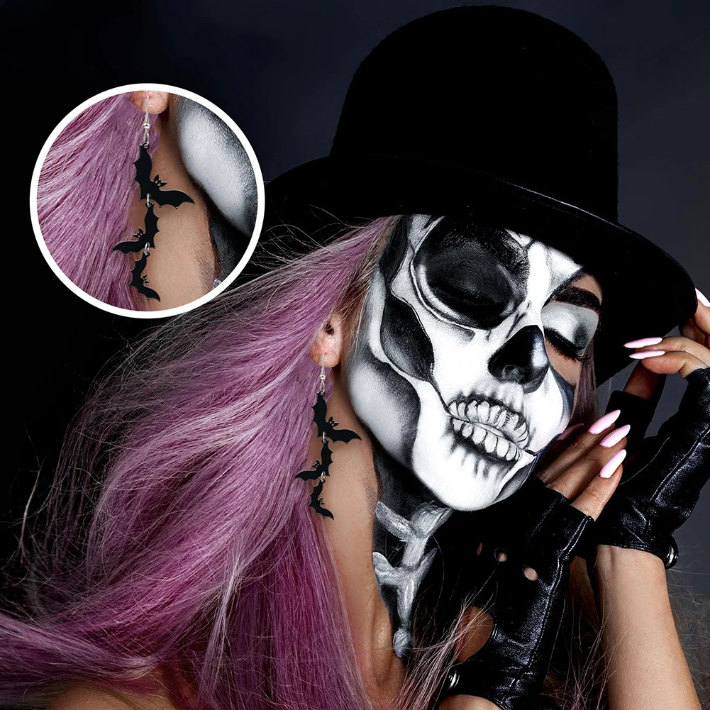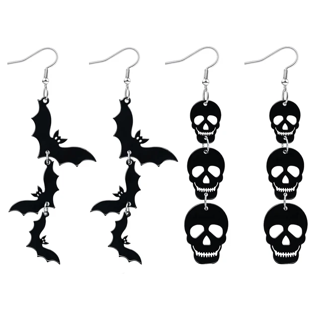 Acrylic Halloween Skull Bat Drop Dangle Earrings Multi-Layered Stacking Earrings Dangle Earrings for Horror Jewelry Party Festivals Gifts