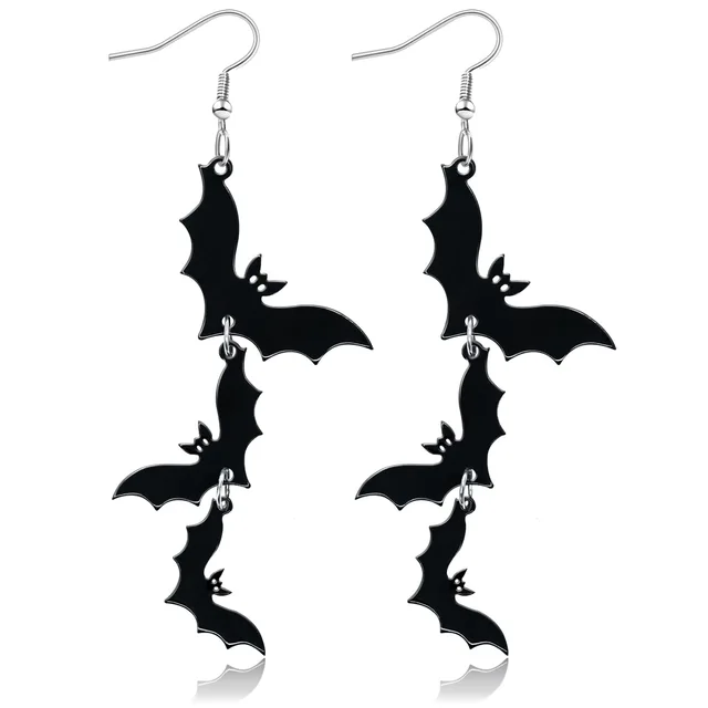 1.Bat Style: Black multi-layered stacking earrings feature a bat design, suitable for dark fashion and Halloween costumes. These skull bat drop dangle earrings complement any daring outfit with their mysterious charm.