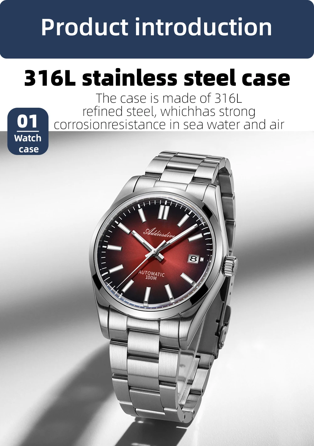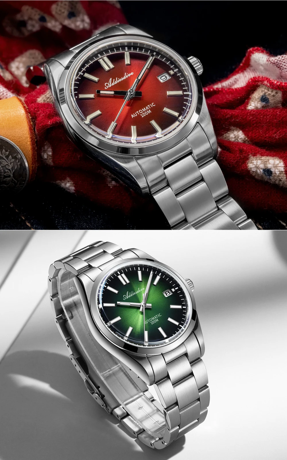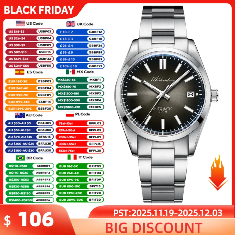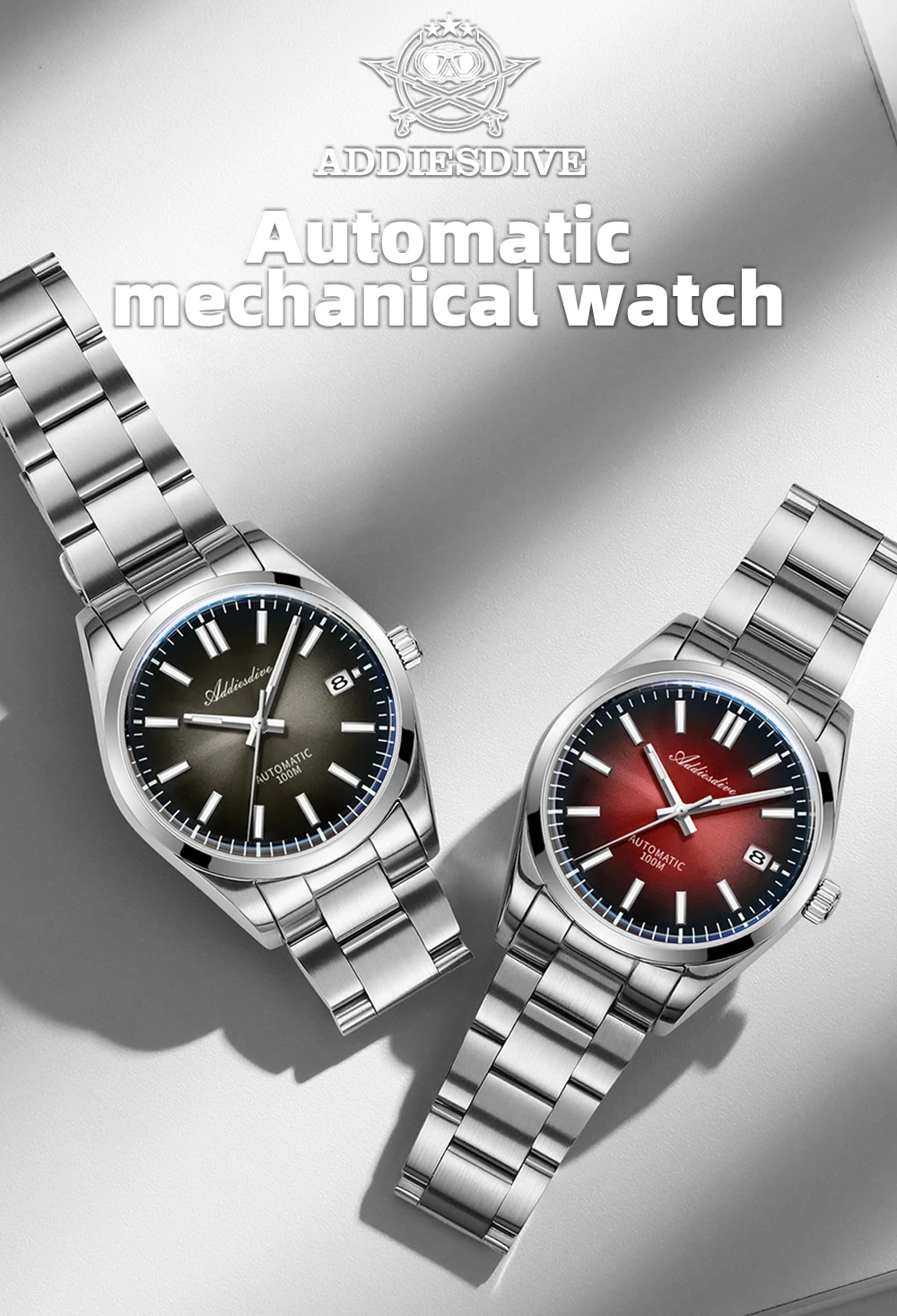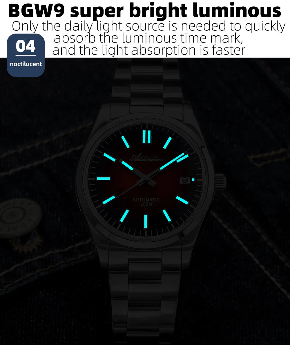 ADDIESDIVE Automatic Man Watch Sapphire Glass 100M Waterproof Super Luminous Wristwatch Luxury 316L Stainless Steel Watch Males