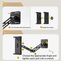 Adjustable Tablet Wall Mount Phone Stand Long Arm 360 Degree Rotatable