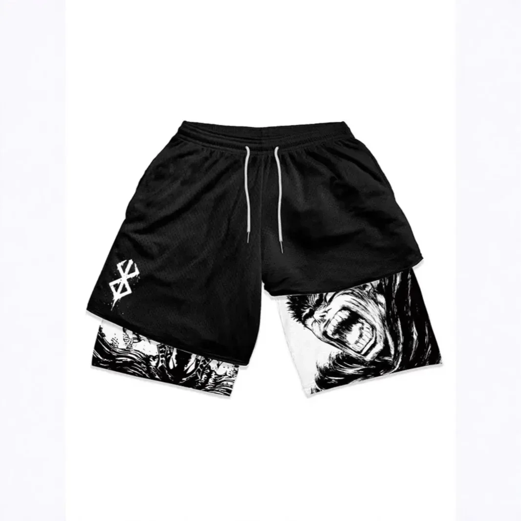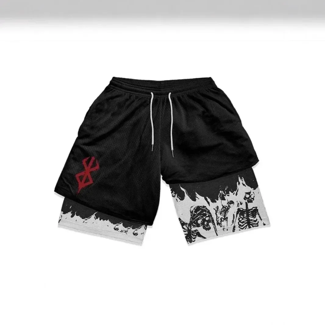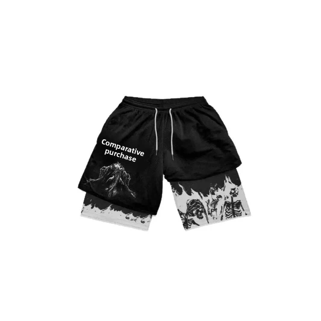 Adult Double Layer Fitness Sports Pants Casual Printed Shorts Cross-Border 3D Digital Personalized Print Comfortable Summer Wear