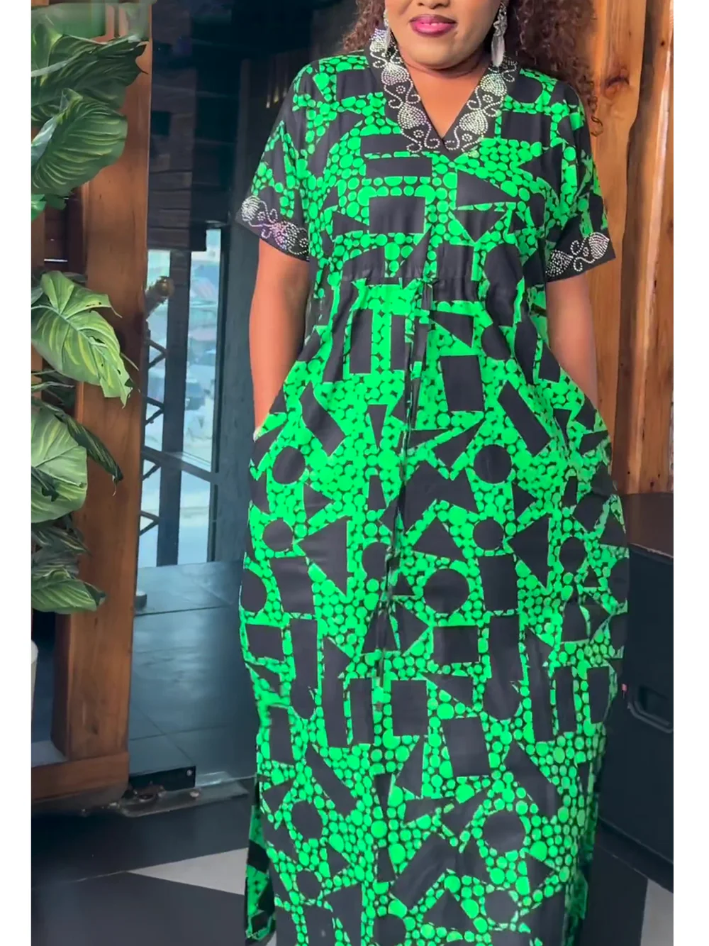 2025 new arrivals loose women/lady summer maxi dress long print short sleeve abayas african style