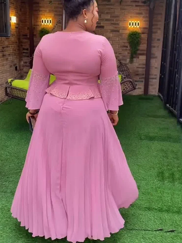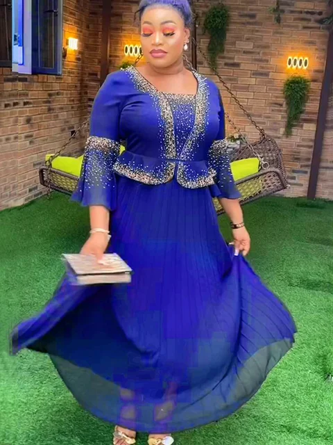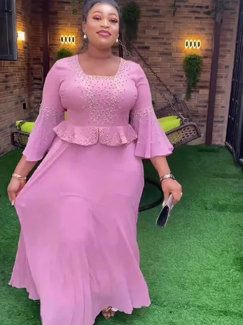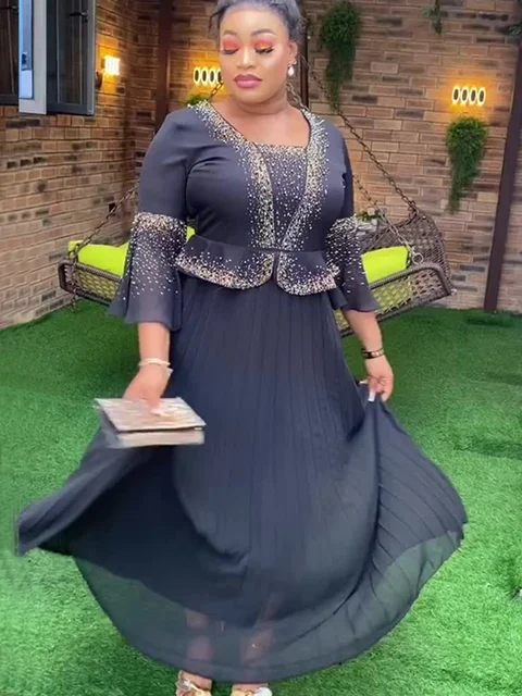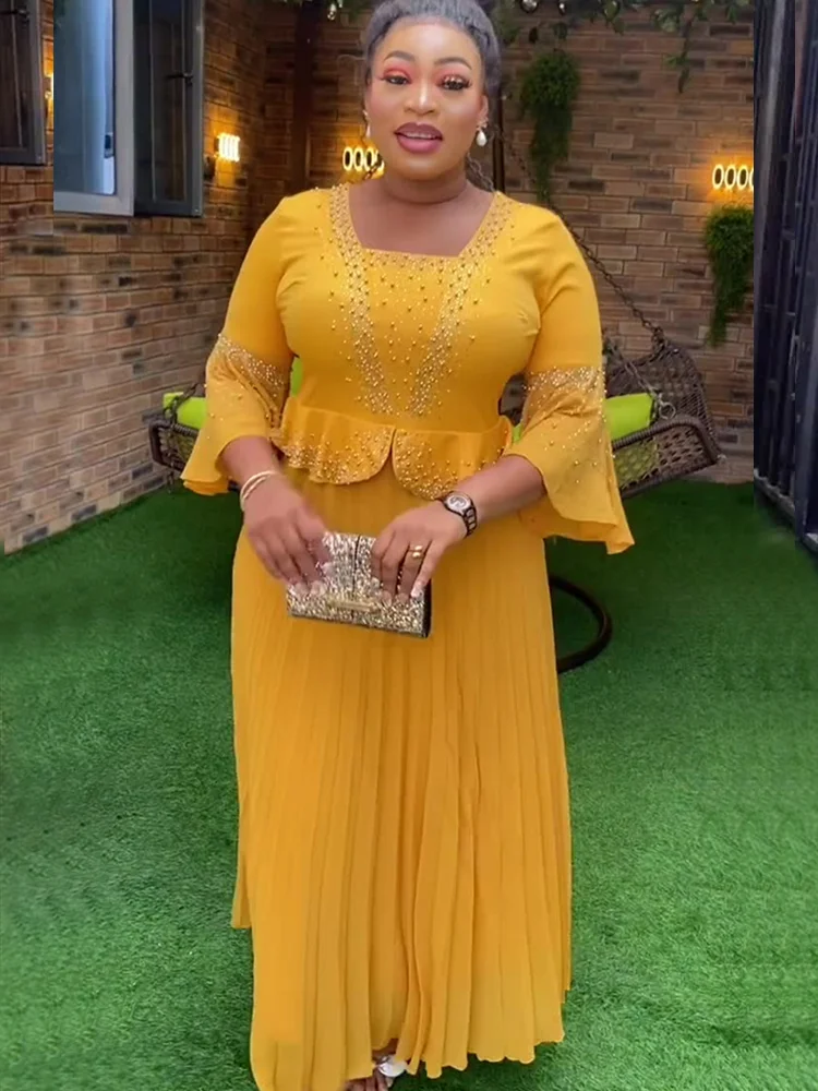 2025 New Beaded Satin African Dresses for Women Elegant Evening Party Dress Dubai Abaya Kaftan Wedding Gown Dashiki Ankara Robe