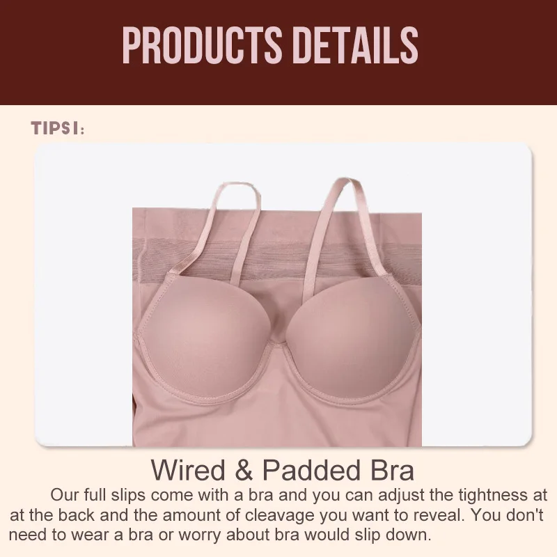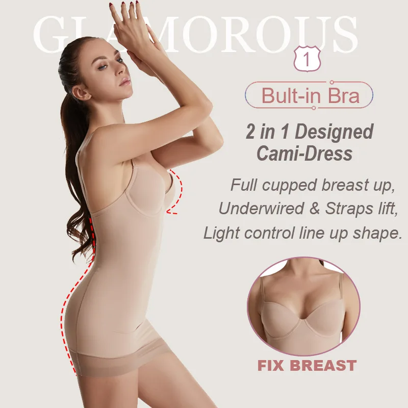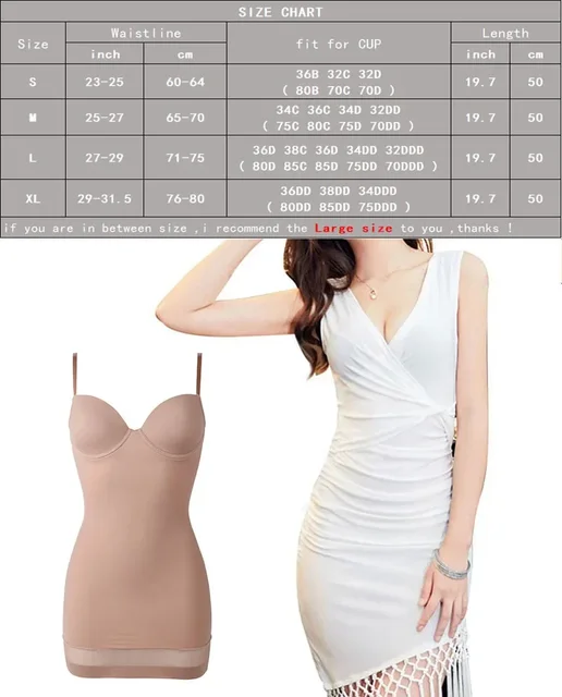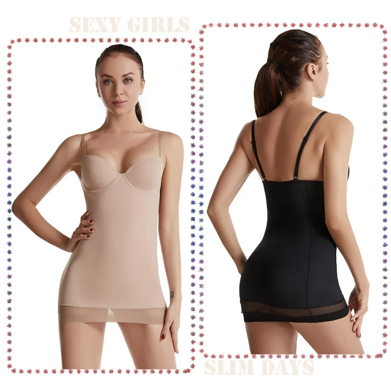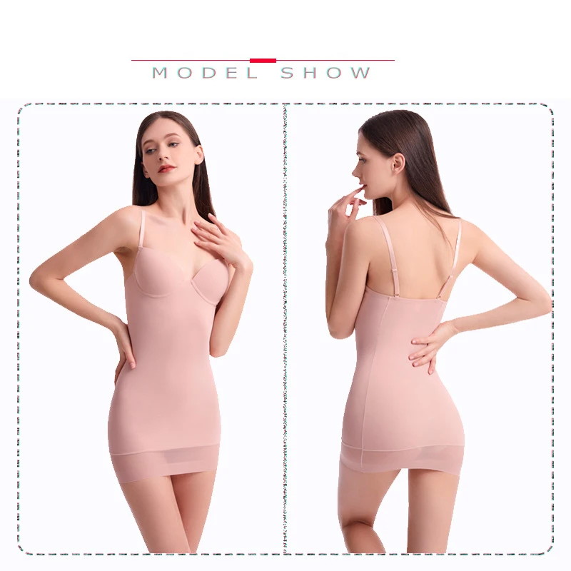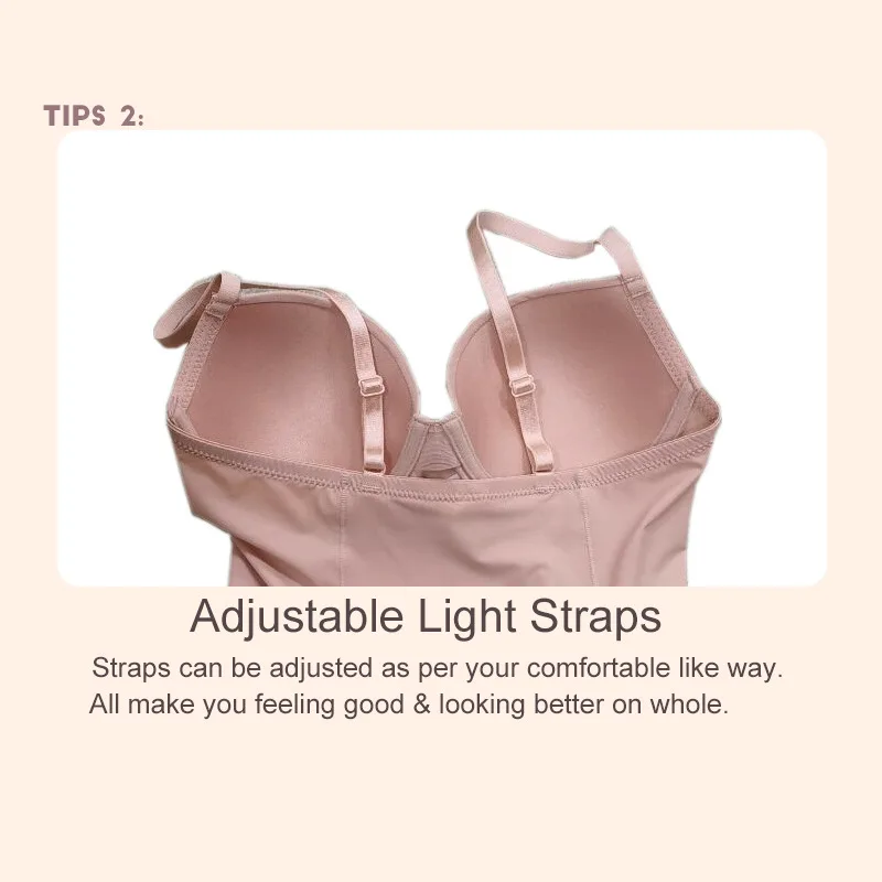 Bodysuit Backless Adjustable Strap Soft Cup Bra Skirt Shapewear Slips
