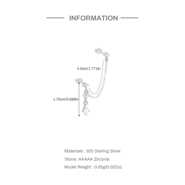 Price range: 5.95$ through 7.09$Aide 925 Sterling Silver 1pc Water Drop Zirconia Tassel Chain Two Stud Earrings For Women Hypoallergic