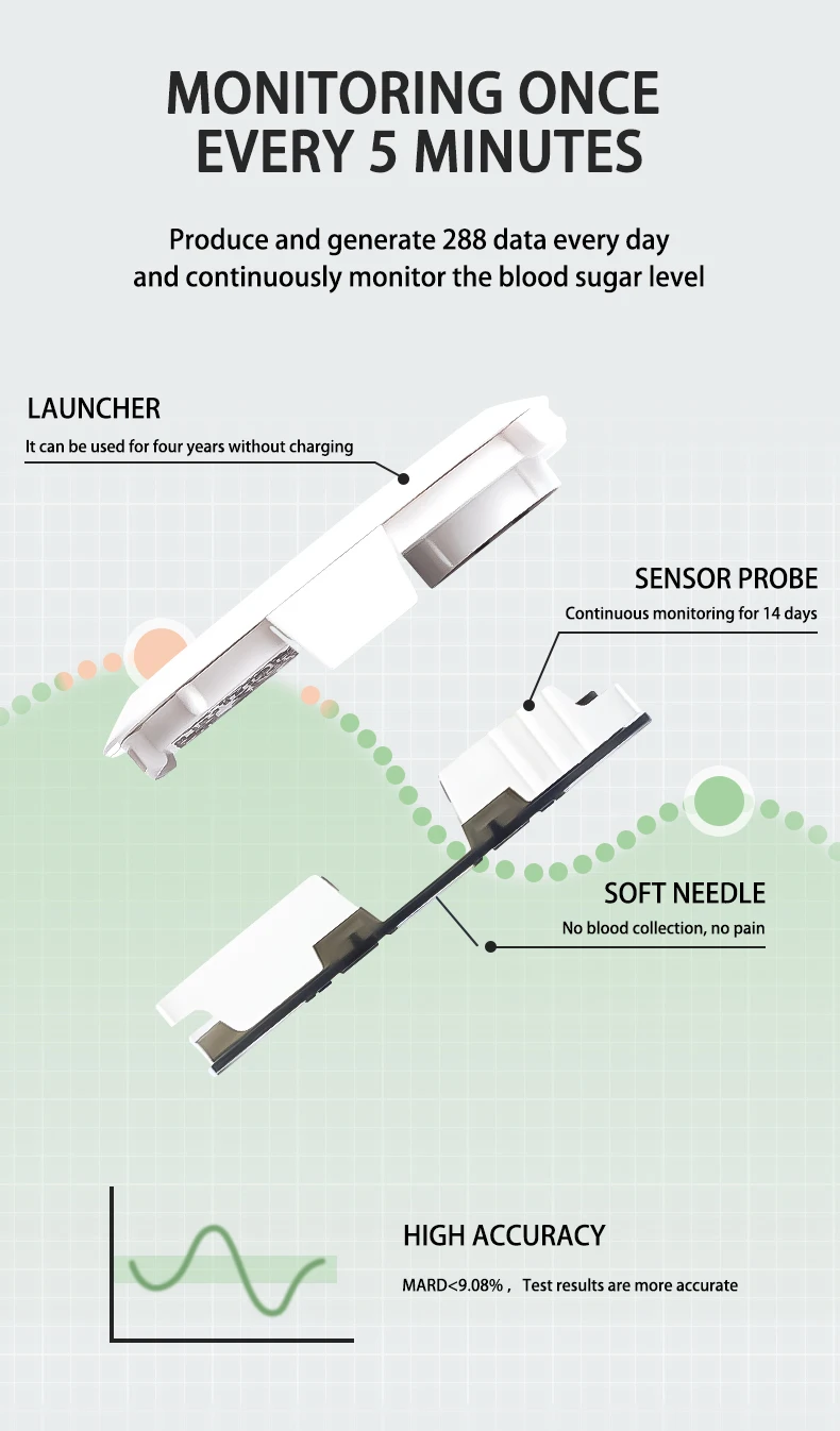 Experience convenience like never before with finger-free testing, making glucose monitoring a hassle-free process.