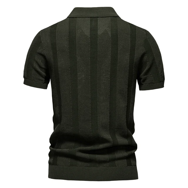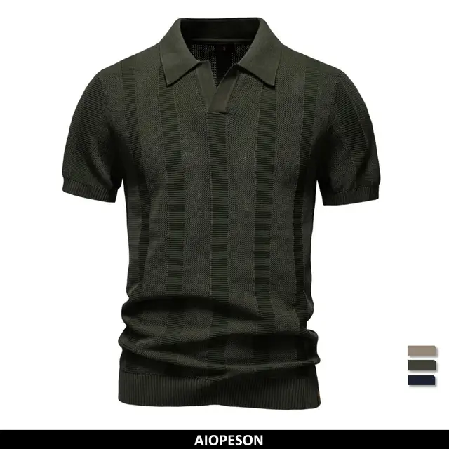 AIOPESON 2025 Men’s Solid & Striped Mesh Polo Shirt – Breathable Knit Casual Top with