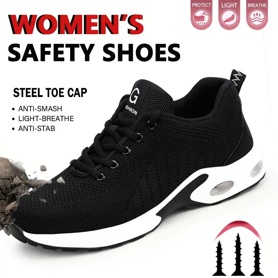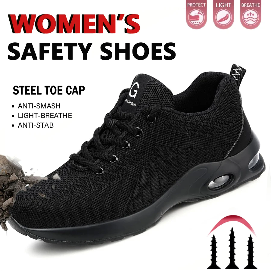 Air Cushion Steel Toe Shoes For Women Lightweight Slip Resistant Work Shoes Man Comfortable Breathable
