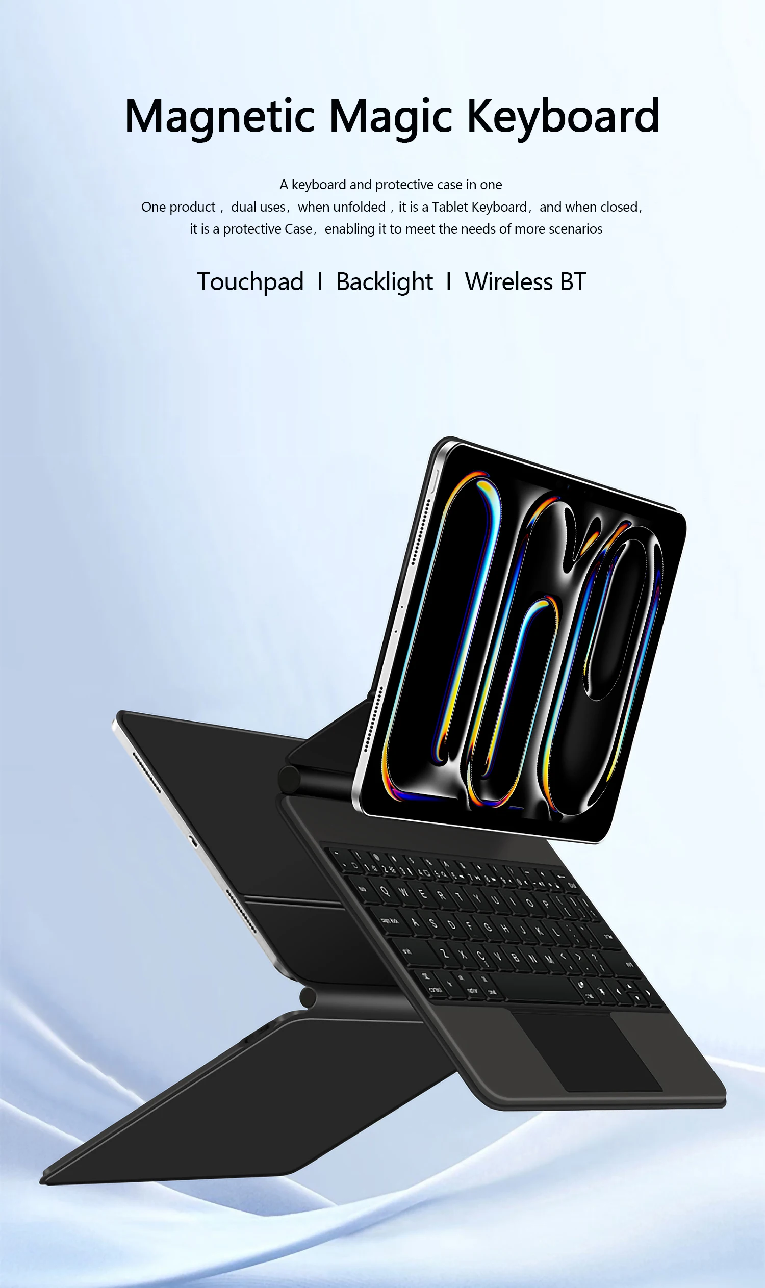 Magnetic separation, backlight, touch panel, multi angle support、Wireless Bluetooth connection