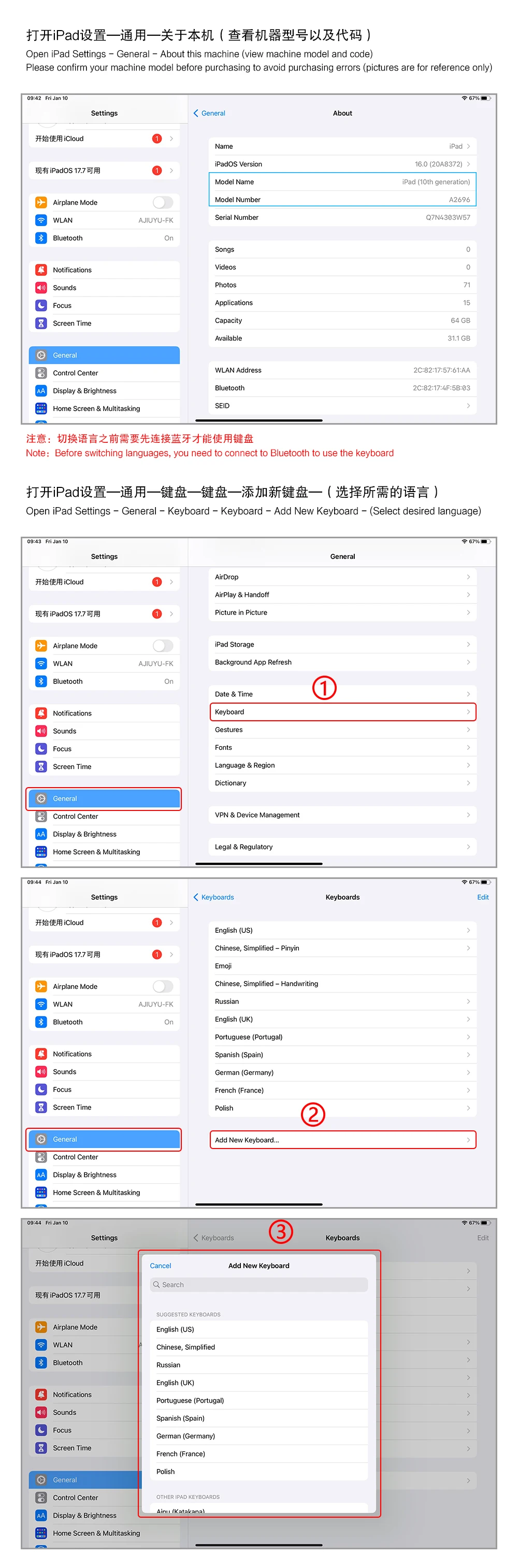 【2】1. After connecting Bluetooth, open your iPad – Settings – Keyboard – Add New Keyboard