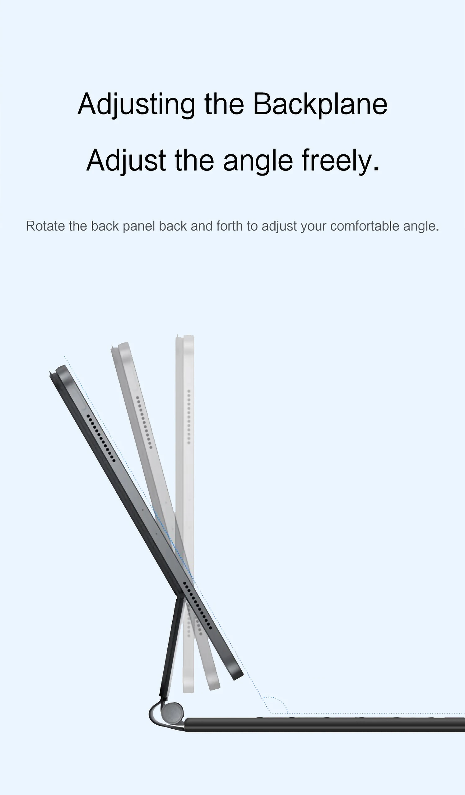 Note:Due to the large size of the tablet, if the keyboard angle is adjusted too much during use, the keyboard may tilt. This is a normal situation, please do not panic, just adjust the keyboard amplitude, and it will not affect use.