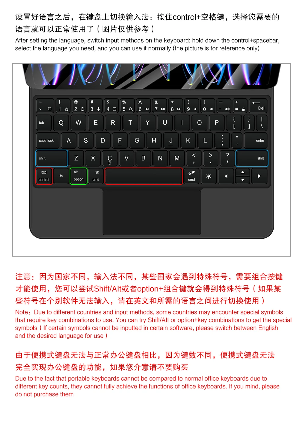 注意:如果您在使用键盘的时候,触控板出现延迟,或者蓝牙连接不稳定的情况,请检查您的iPad系统,是否升级为最新版本了,只需要更新最新版本即可正常使用。
