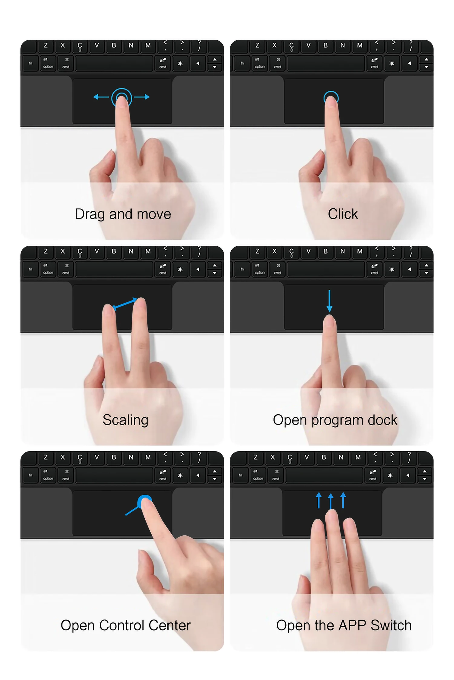 Note: If you experience delays in the touchpad or unstable Bluetooth connection while using the keyboard, please check your iPad system to see if it has been upgraded to the latest version