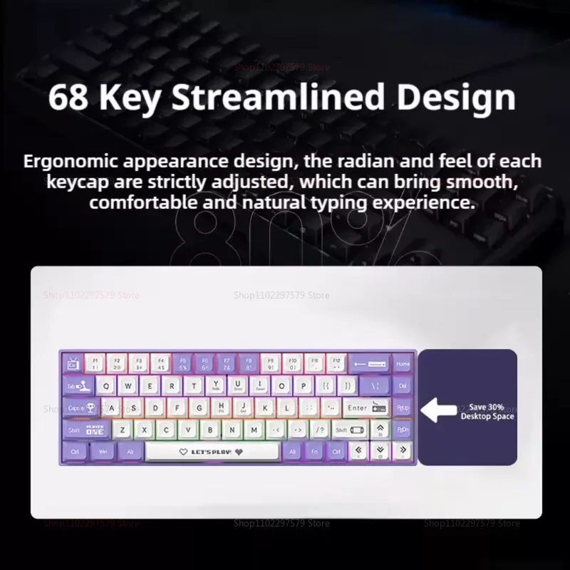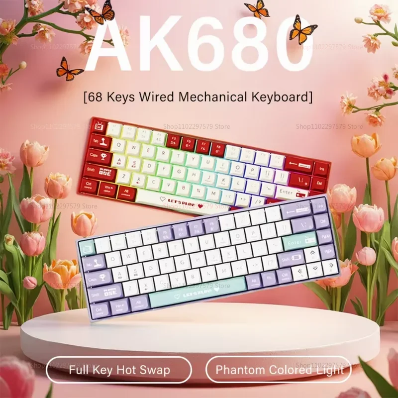 AK680 Mechanical Gaming Keyboard Wired Hot Swap 68 Keys Ergonomic E-sport Office Type-C Laptop Accessory