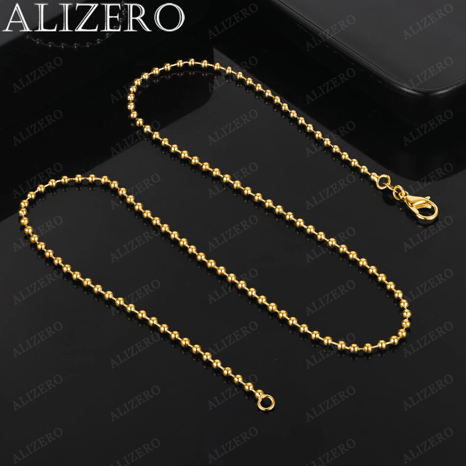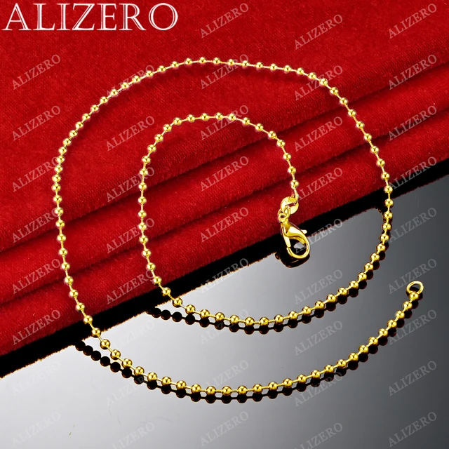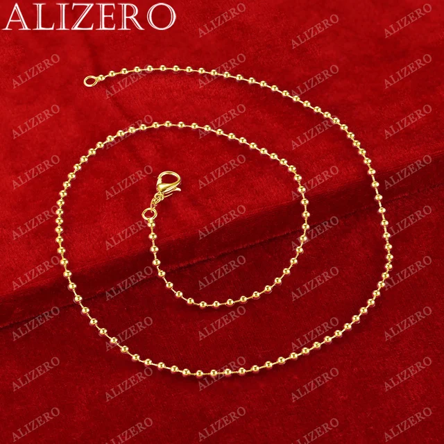 ALIZERO 18K Gold 2mm Beads Base Chain Necklaces 16-30 Inches Women Man Fine Jewelry Wholesale Personality Trend Bead Necklace