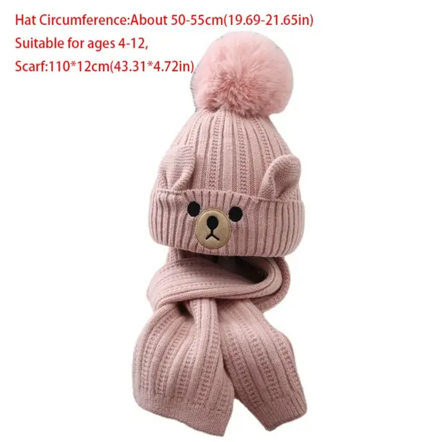 Hat Circumference:About 50-55cm(19.69-21.65in),Suitable for ages 4-12,Scarf:110*12cm(43.31*4.72in)