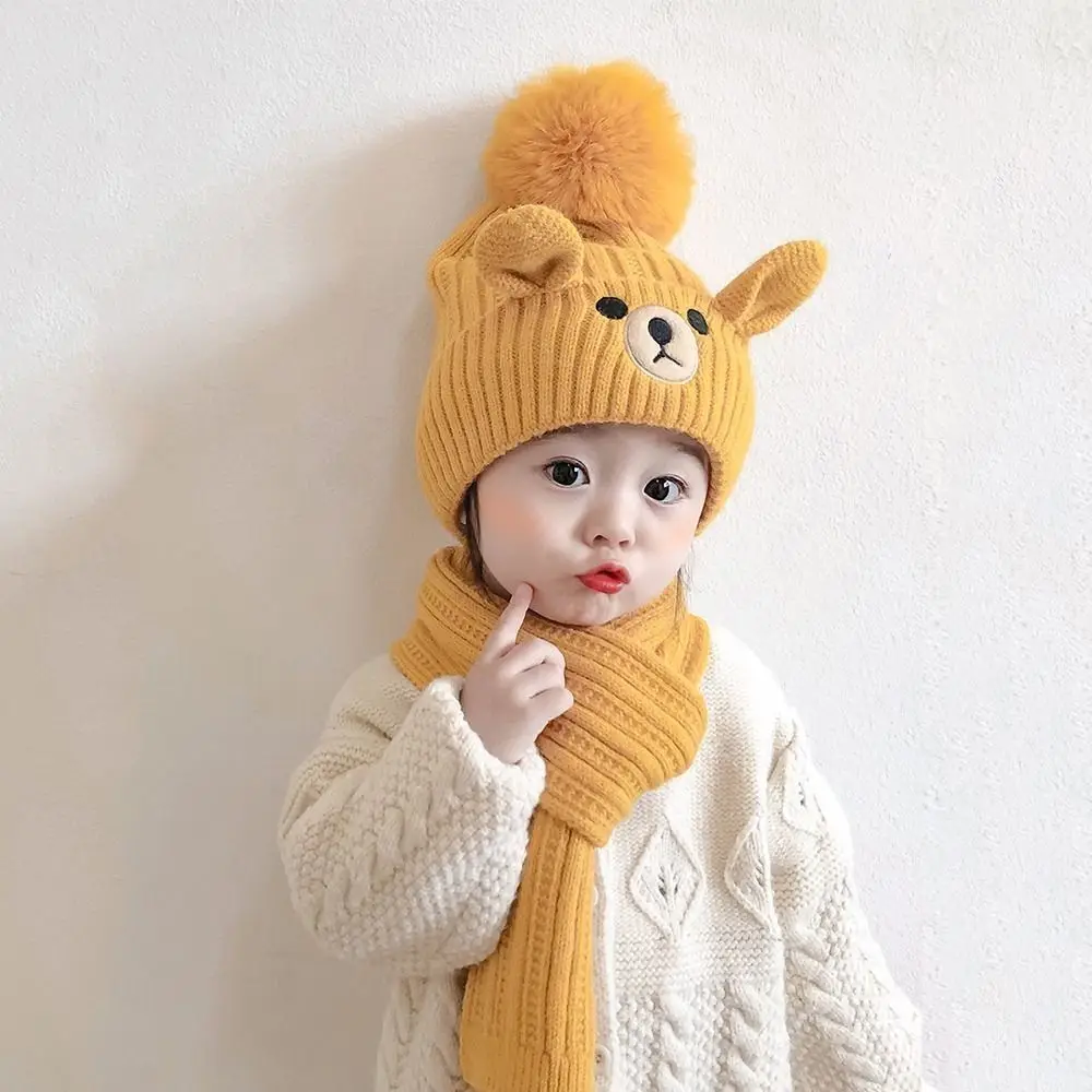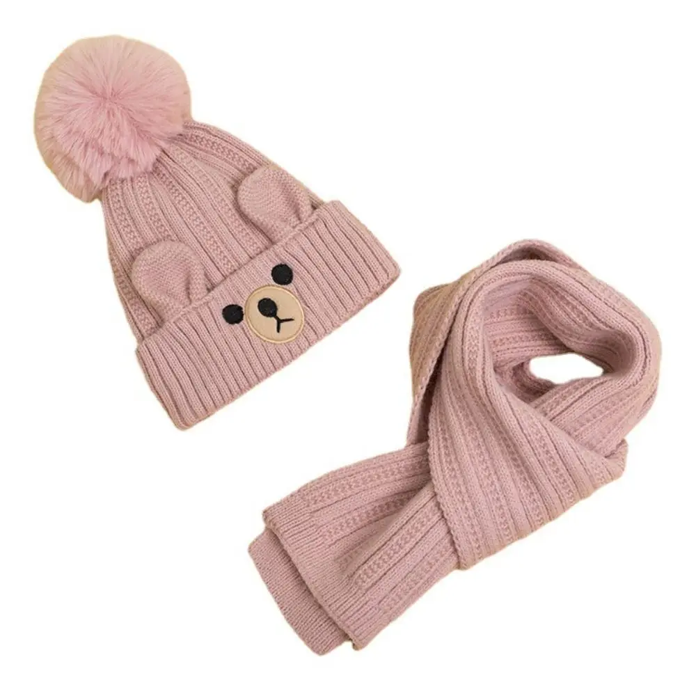 All-match Plush Bear Children Scarf Hat Set Cartoon Warm Wool Beanie Neck Warmer Knitting Warm Knitted Cap Cloth Accessories