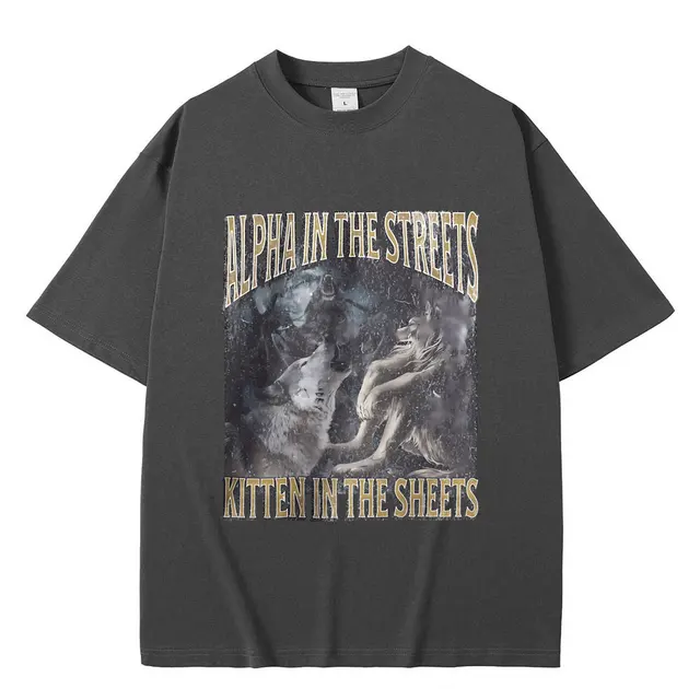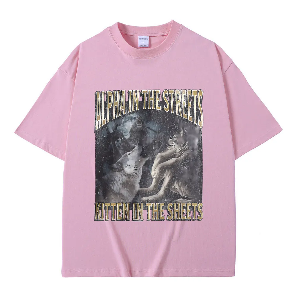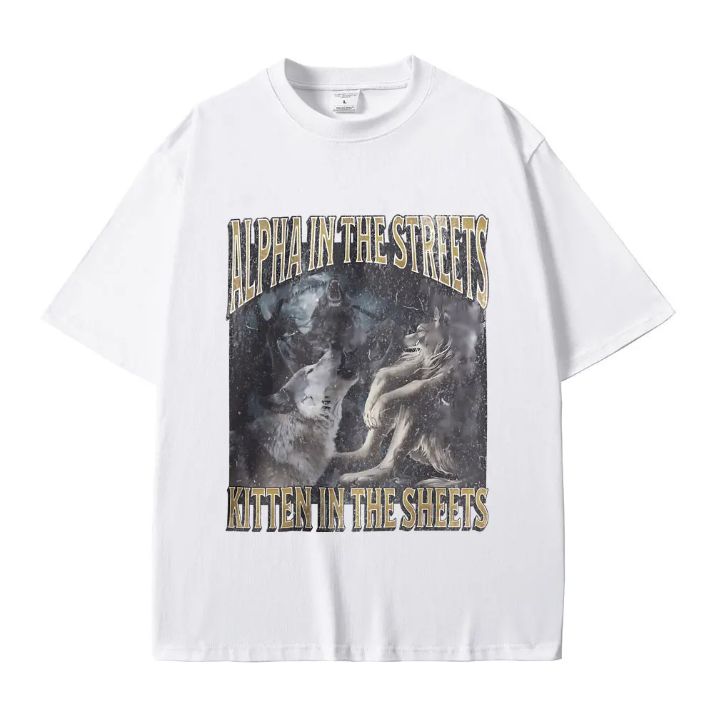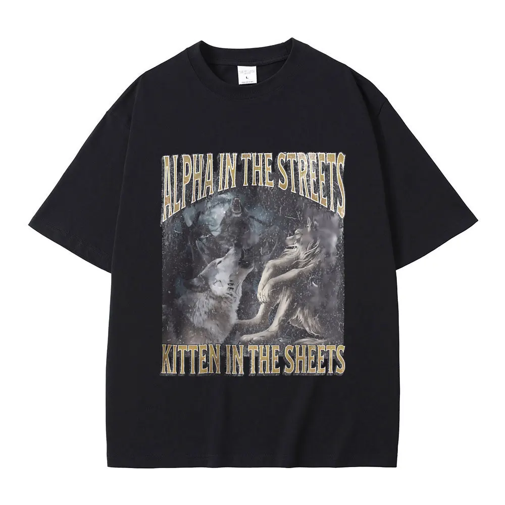 Alpha in The Streets Kitten in The Sheets Funny Werewolf Meme Tshirt Men Women Casual Oversized Streetwear