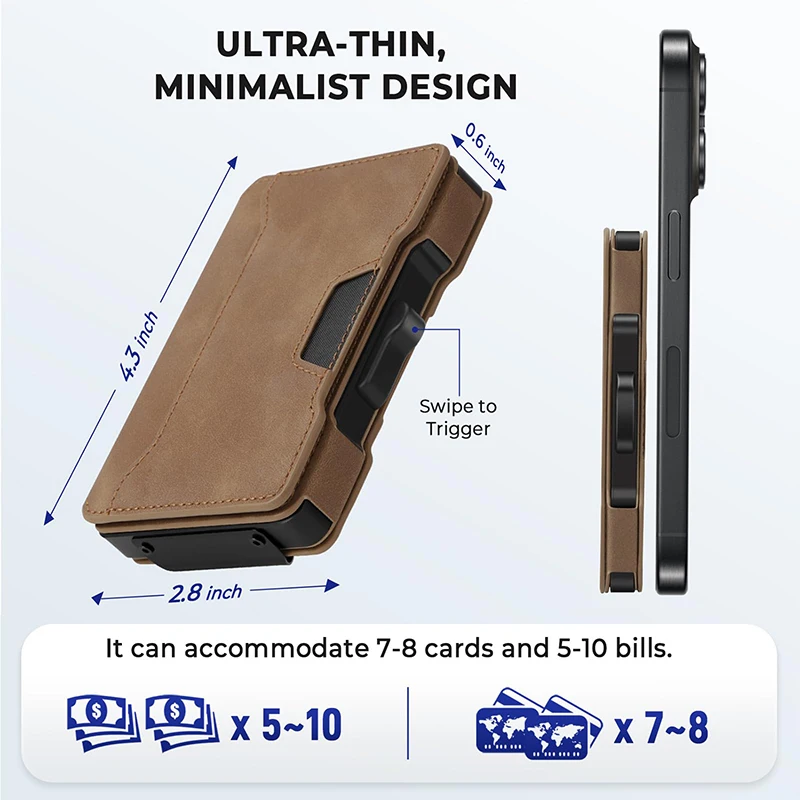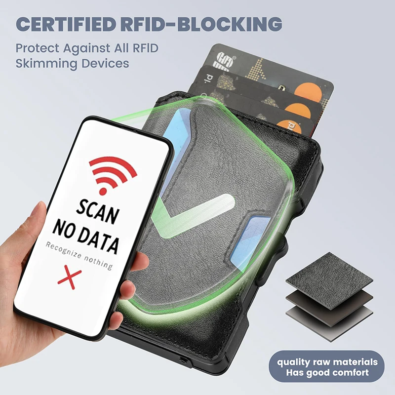 Aluminum Pop Up Card Case and Leather Slots Credit Card Holder RFID Blocking Wallet for Men with Gift
