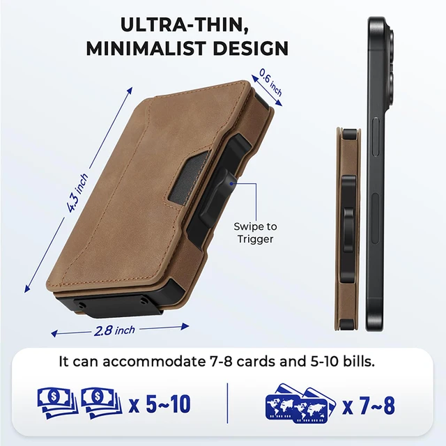 Aluminum Pop Up Card Case and Leather Slots Credit Card Holder RFID Blocking Wallet for Men with Gift