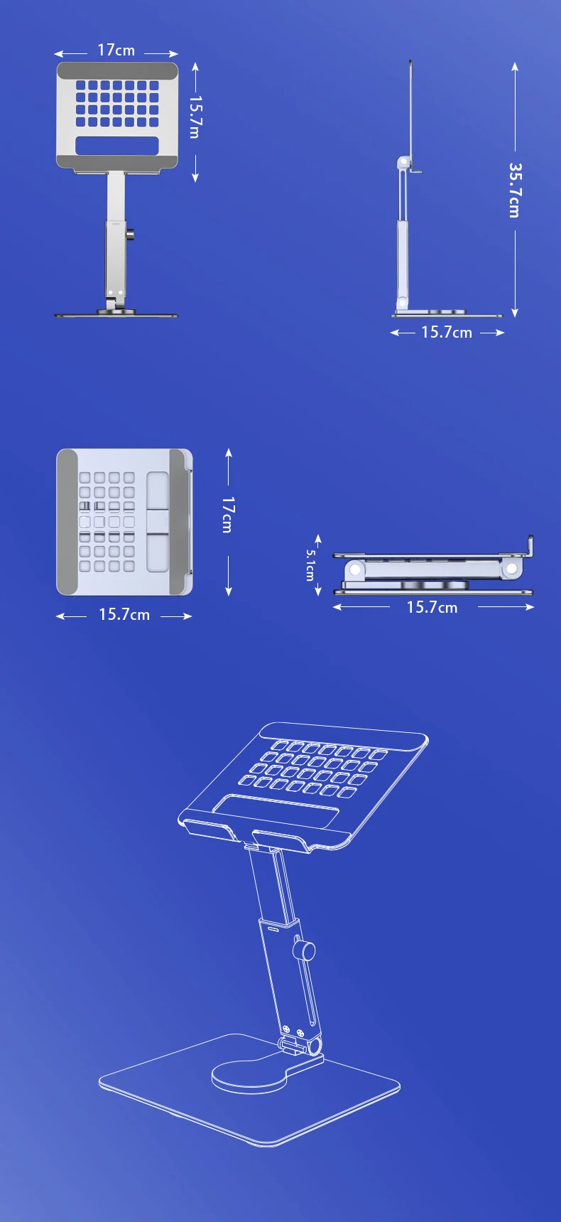 • 360° Rotating Design :The Aluminum Tablet Stand features a 360° rotating design, allowing you to easily adjust the viewing angle for your device to suit your needs.