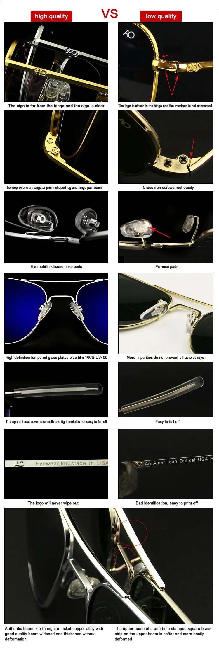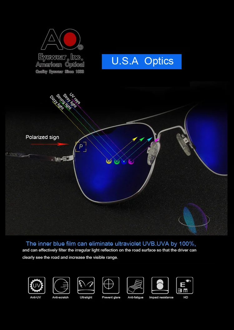 American AO Sunglasses Men Army Military Aviation Pilot Sun Glasses Polarized Lens Woman Luxury Brand