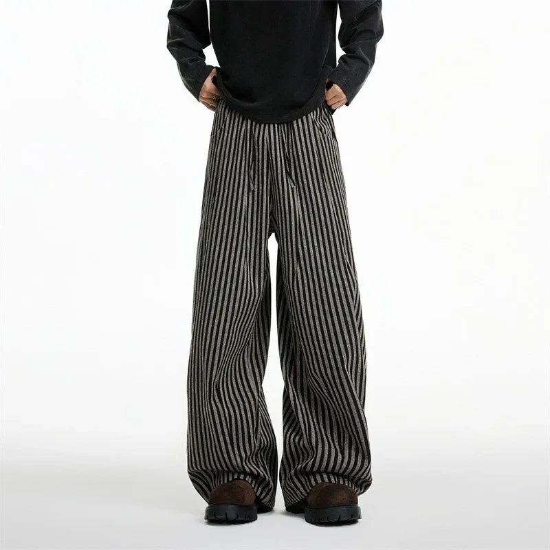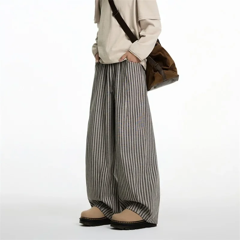 American Casual Striped Loose Fit Straight Leg Pants Men Women Spring Summer Lazy Style Drapey Wide Leg Floor Length Trousers