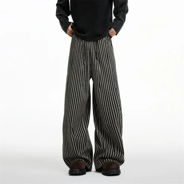 American Casual Striped Loose Fit Straight Leg Pants Men Women Spring Summer Lazy Style Drapey Wide Leg
