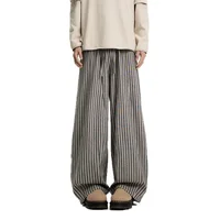 American Casual Striped Loose Fit Straight Leg Pants Men Women Spring Summer Lazy Style Drapey Wide Leg Floor Length Trousers