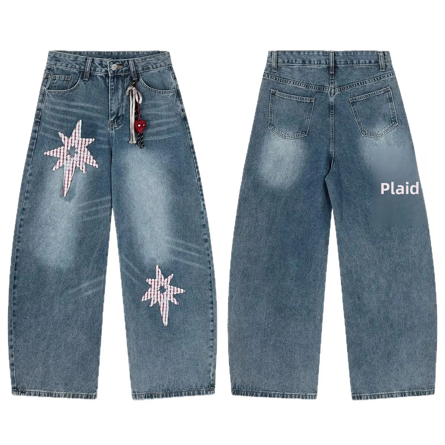 • Star Paste Cat Whiskers Scimitar : The unique star paste cat whiskers scimitar design adds a playful touch to these classic straight leg jeans.