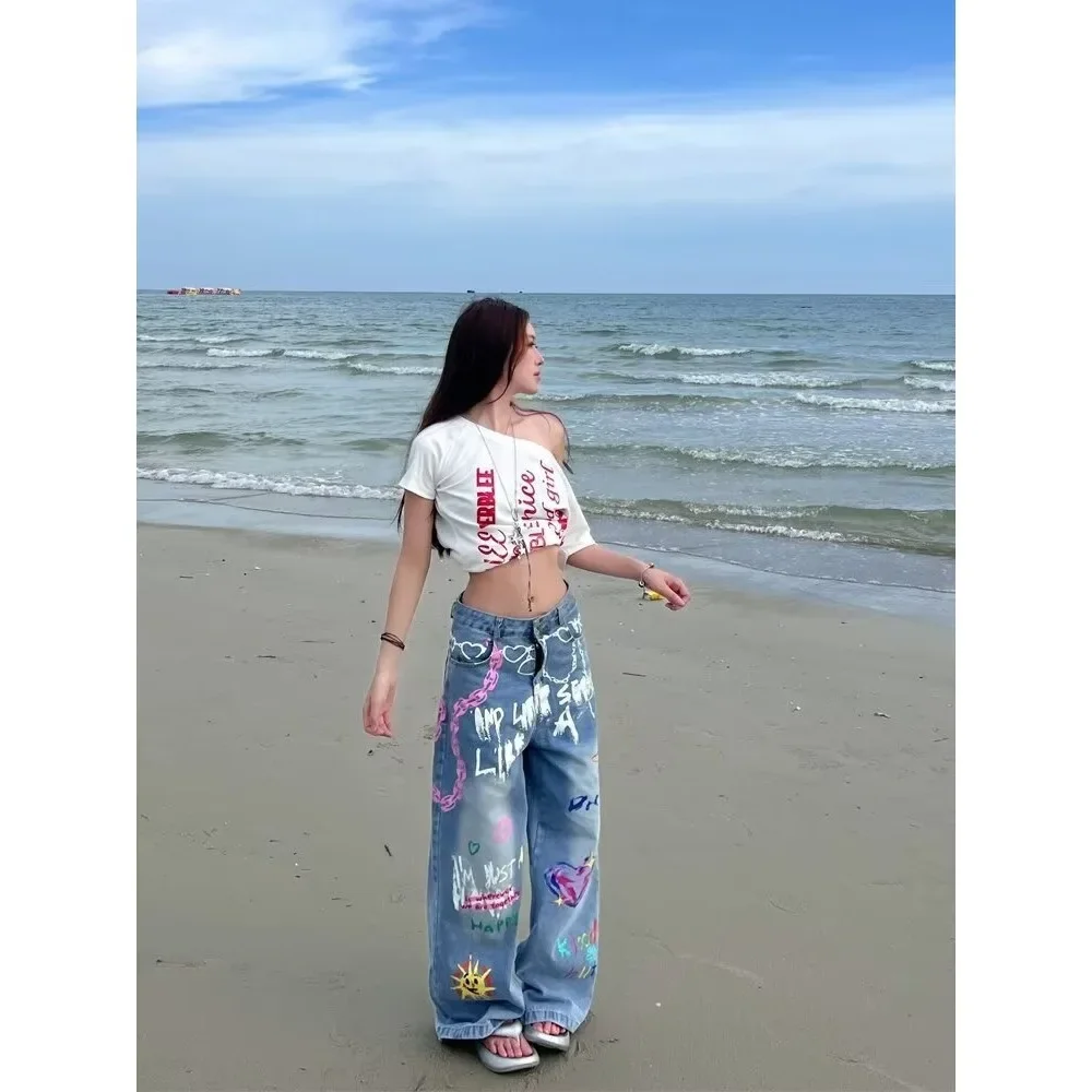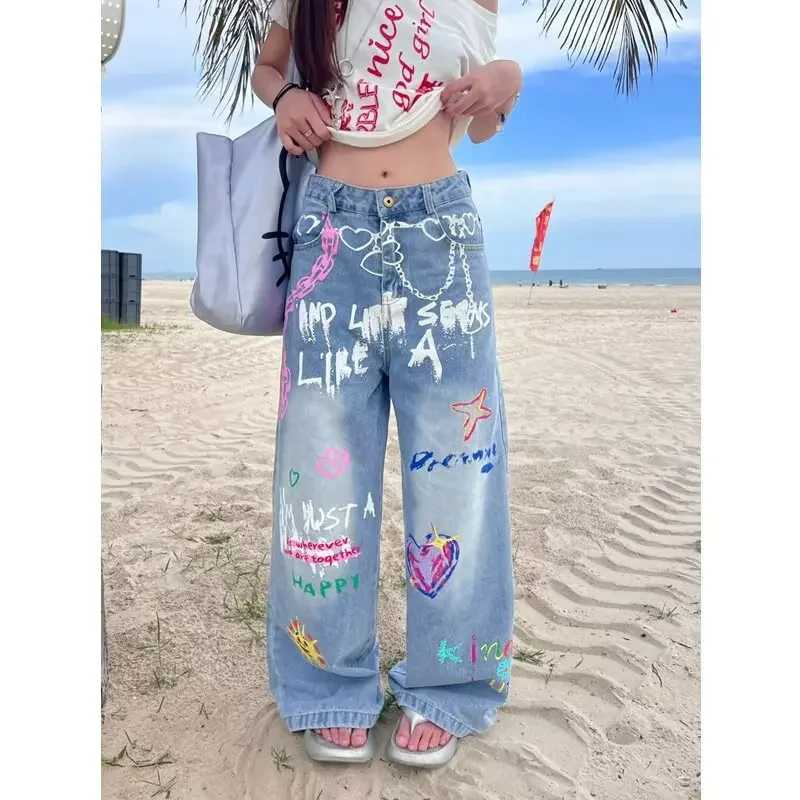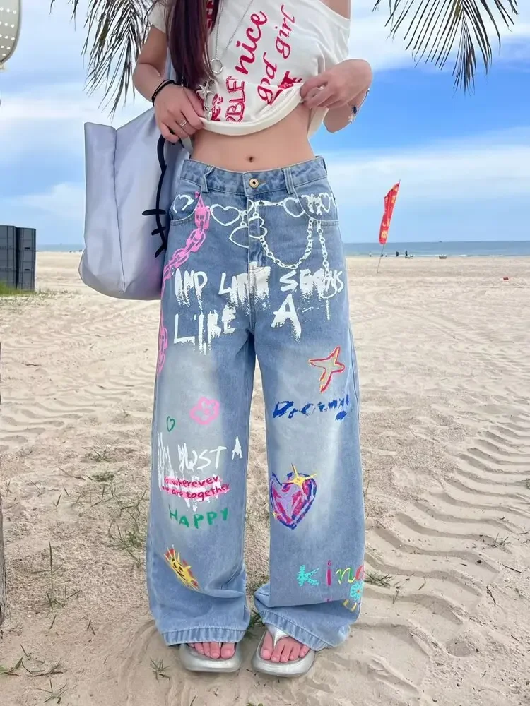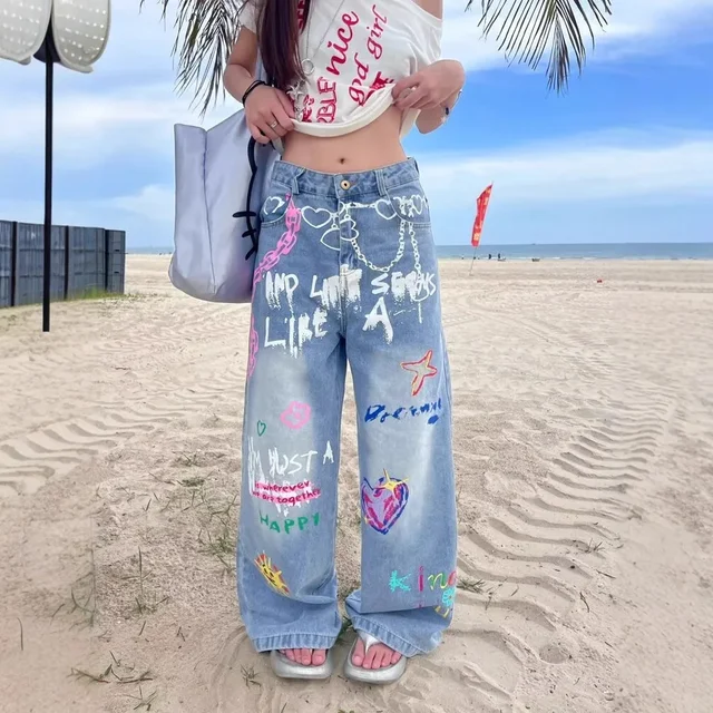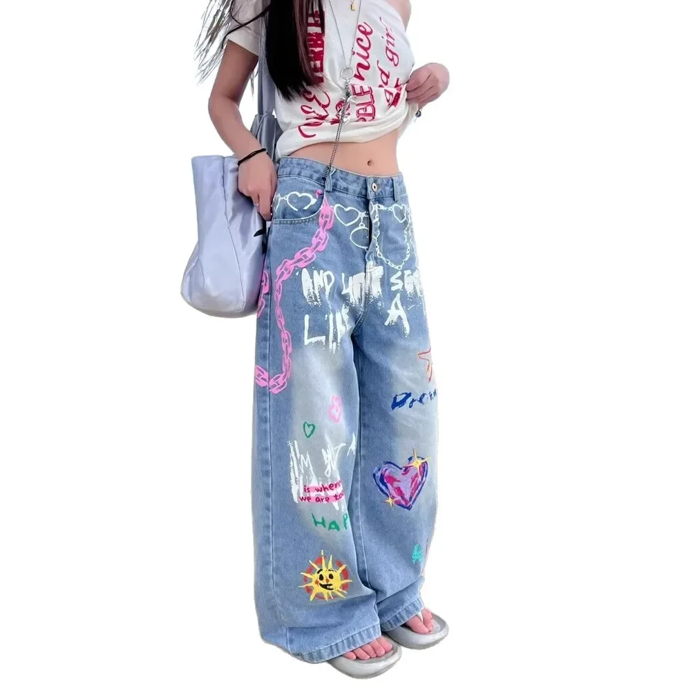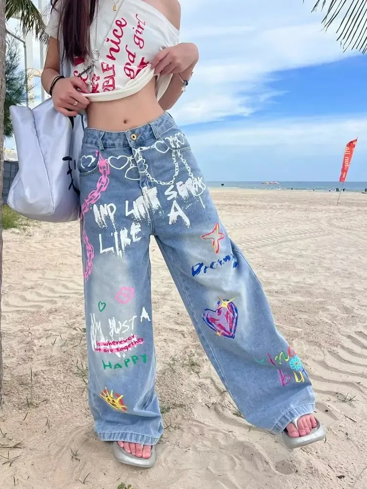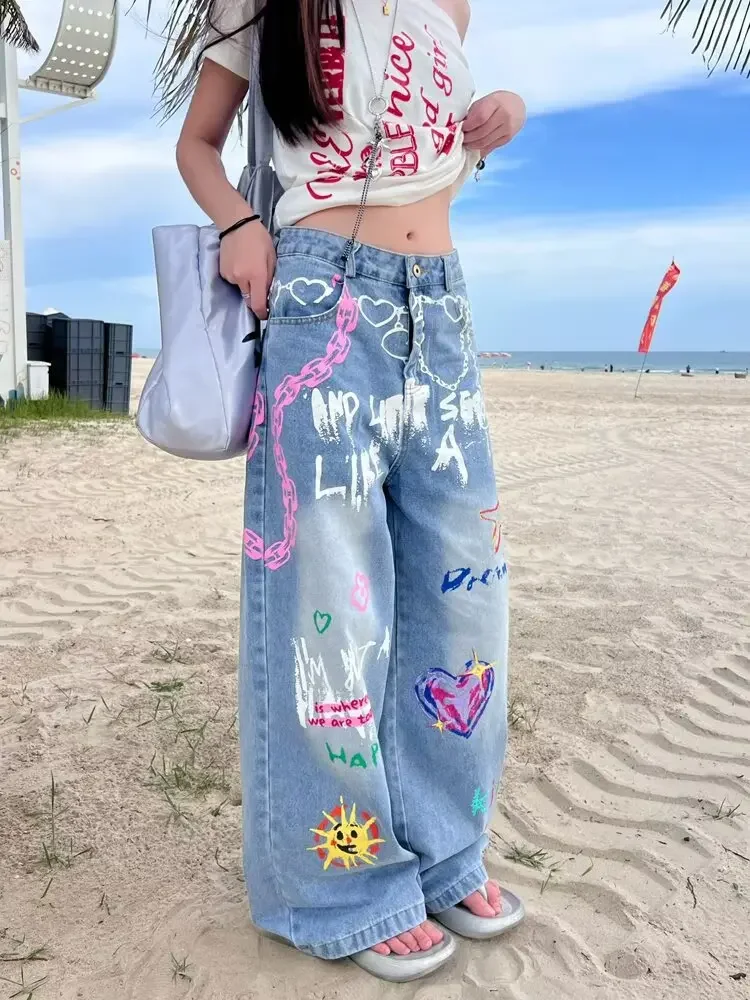 • Hand-painted Graffiti Print : Each pair of jeans features a unique hand-painted graffiti print, adding a touch of urban flair to your child’s wardrobe.