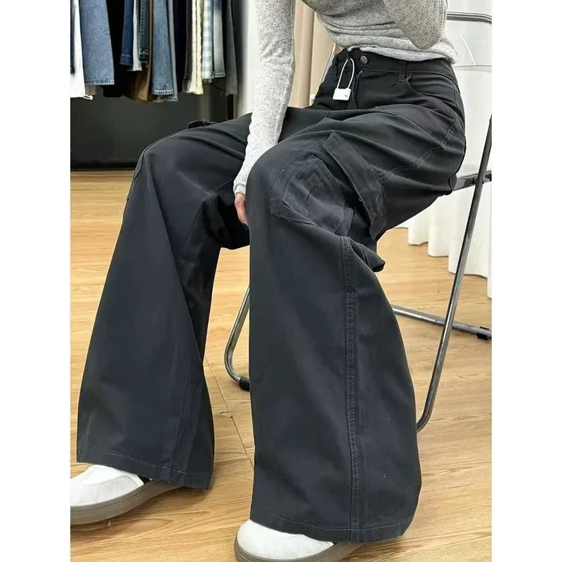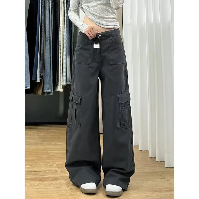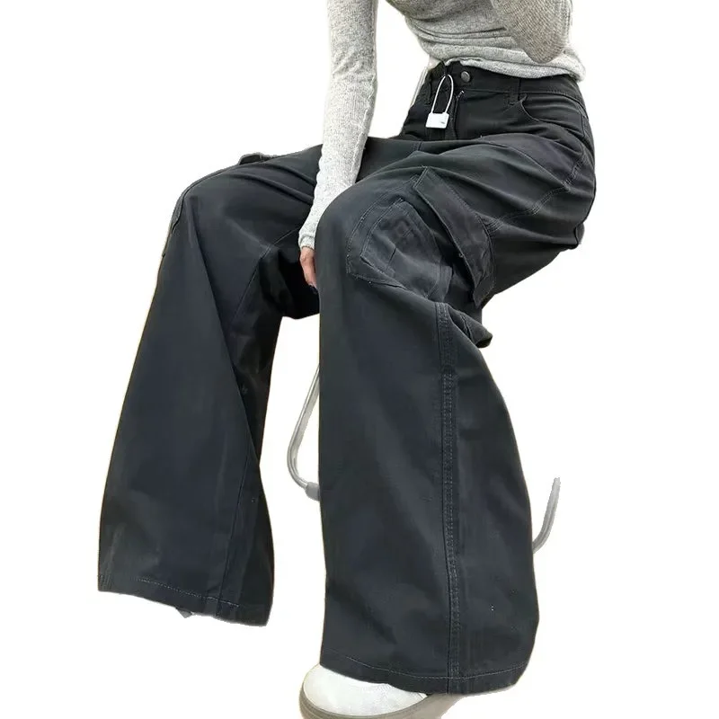 American High Street Retro Work Pants Jeans Women Early Autumn High Waist Loose Wide Leg Casual Straight Leg Long Trousers