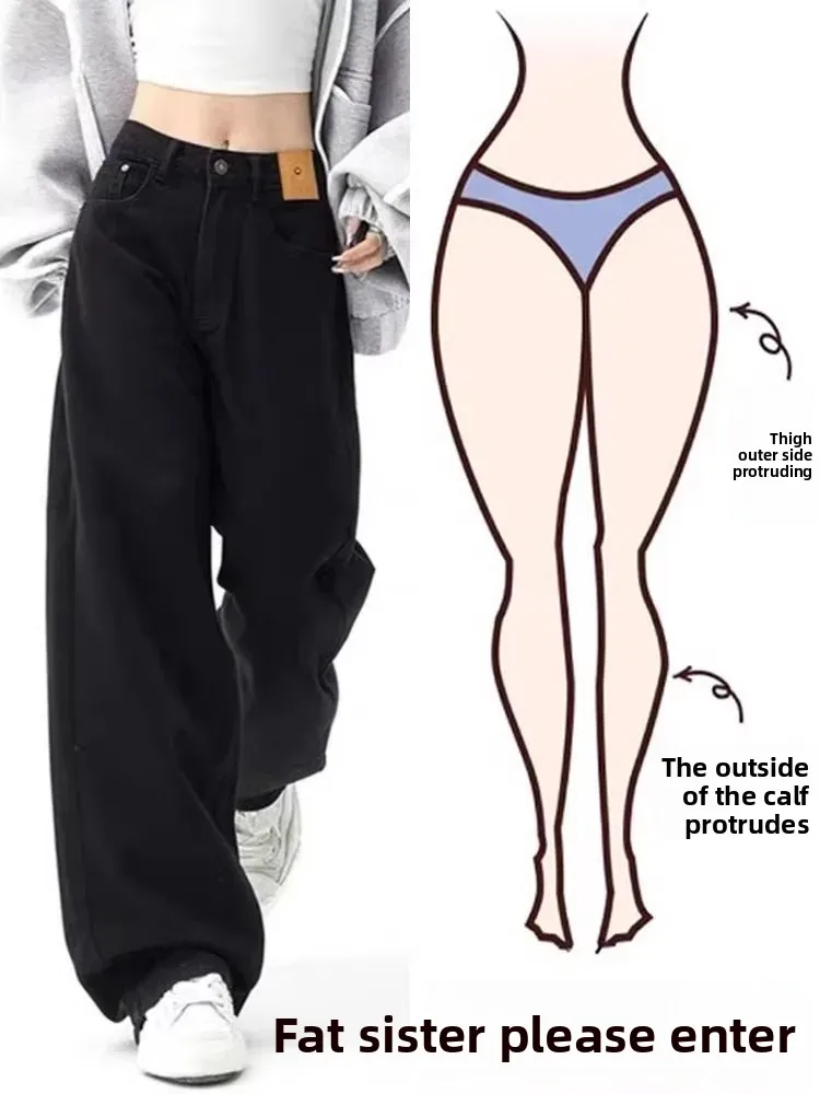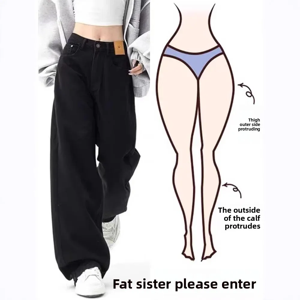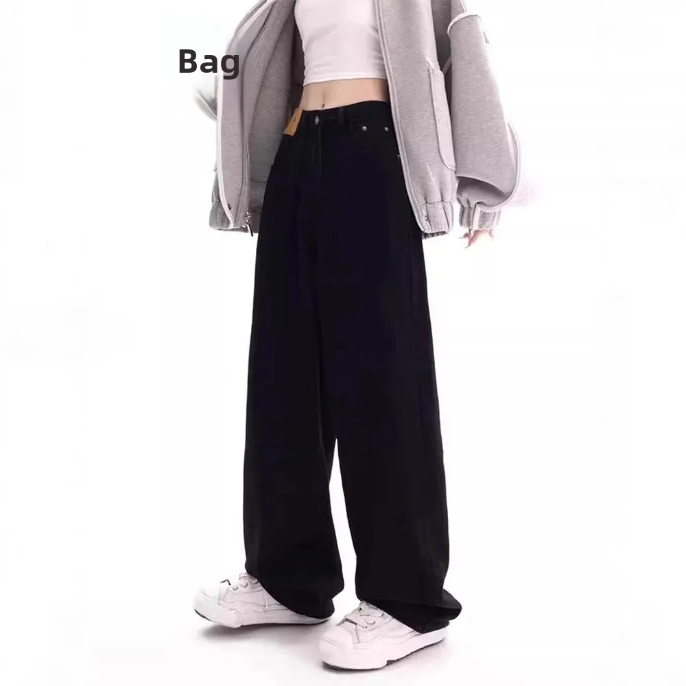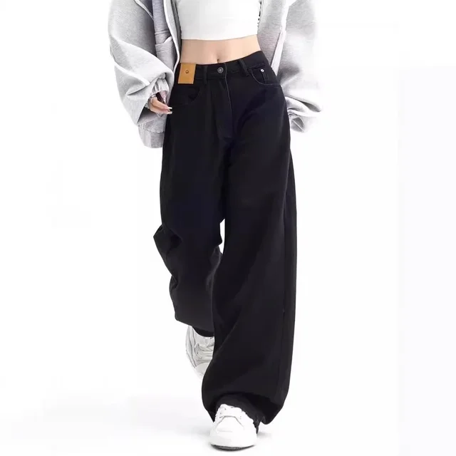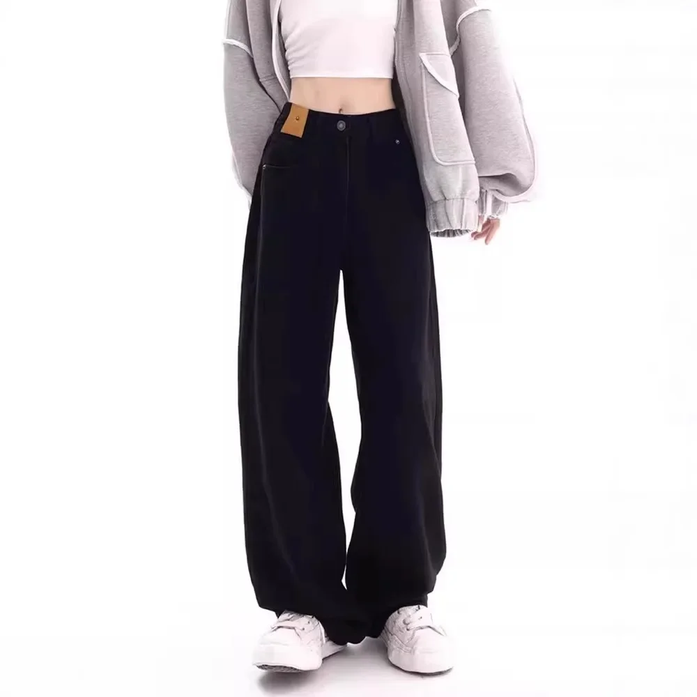 American High Street Vibe Black Straight Cut Loose Casual Wide Leg Jeans Women’s High Waist Autumn