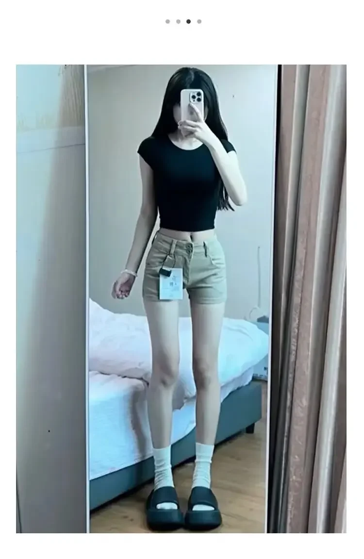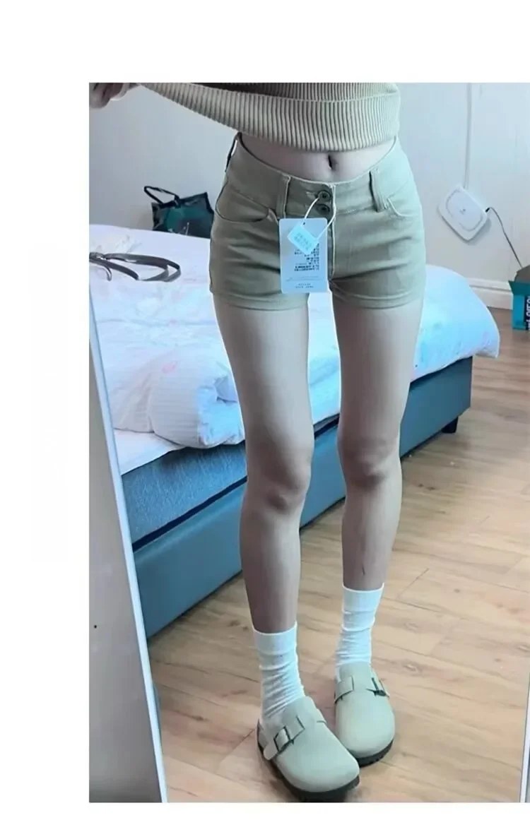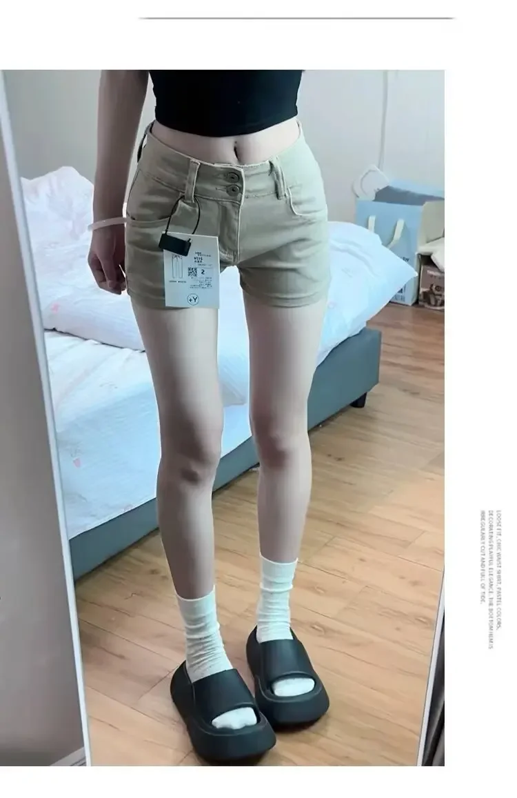 American Khaki Denim Shorts Women’s Casual Versatile Slimming Elastic Light Color Wrap around A-