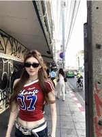 American Pure Desire Hot Girl oulder Stripe T-irt Women's Summer New Slim ort Jazz Dance oulder Exposure Top Women