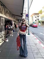 American Pure Desire Hot Girl oulder Stripe T-irt Women’s Summer New Slim ort Jazz Dance oulder