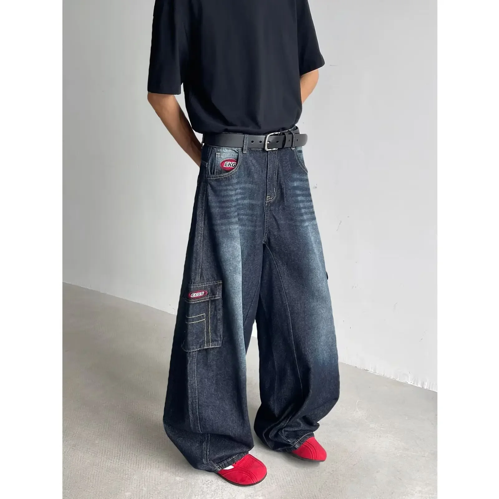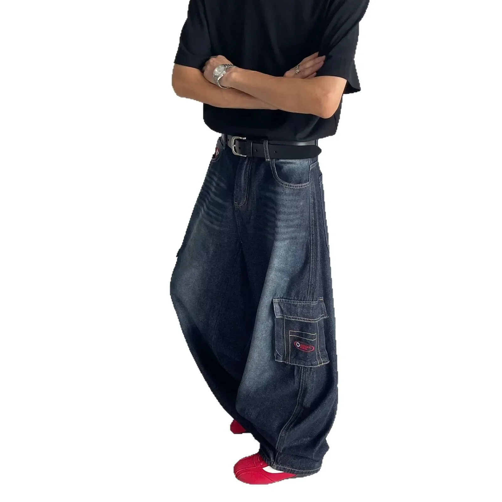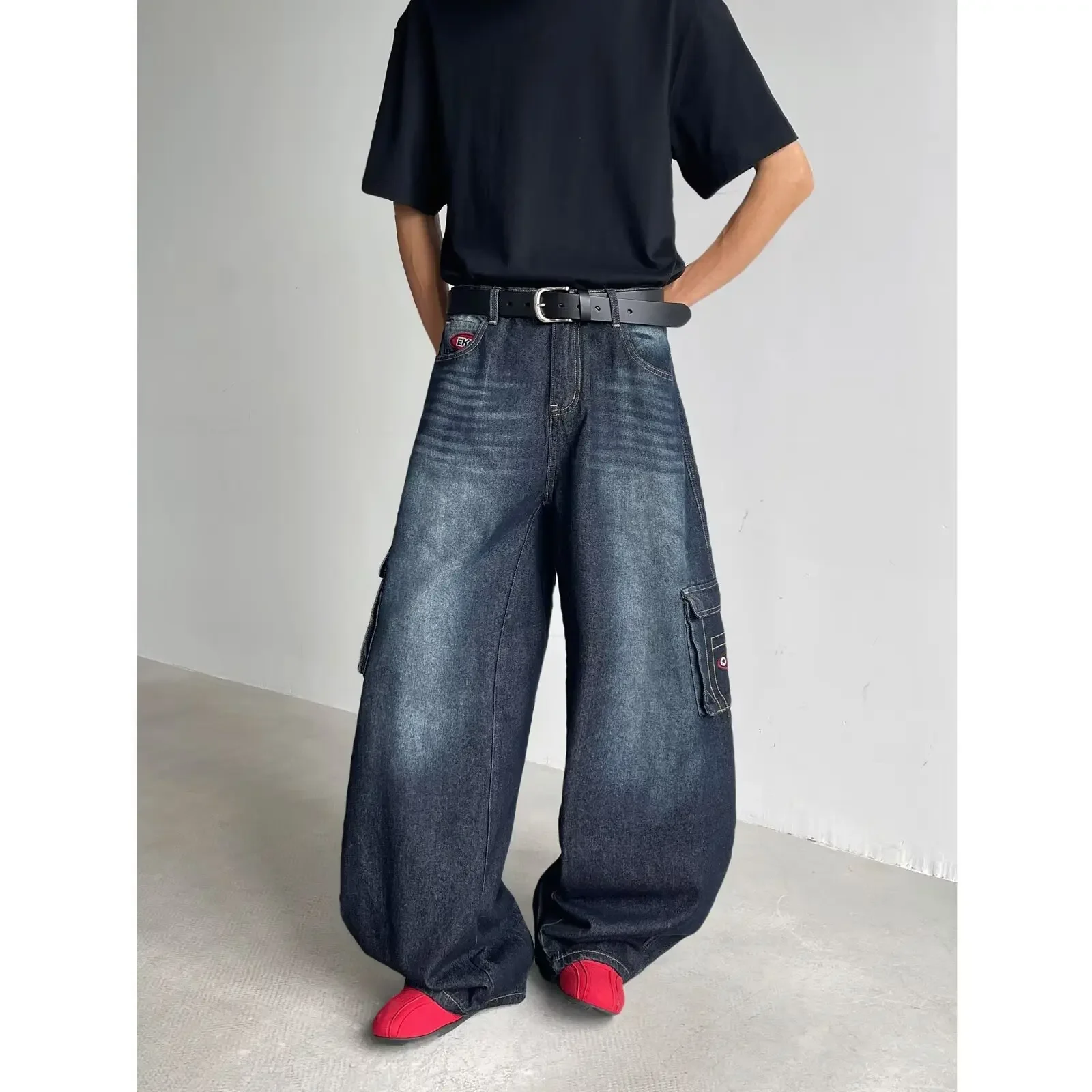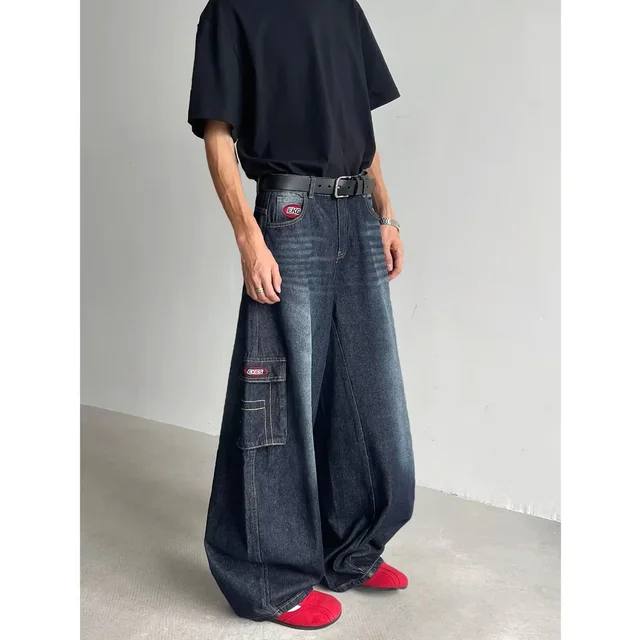 • Retro American Style : Embrace the vintage charm of American retro fashion with these dark blue multi-pocket crock pants.