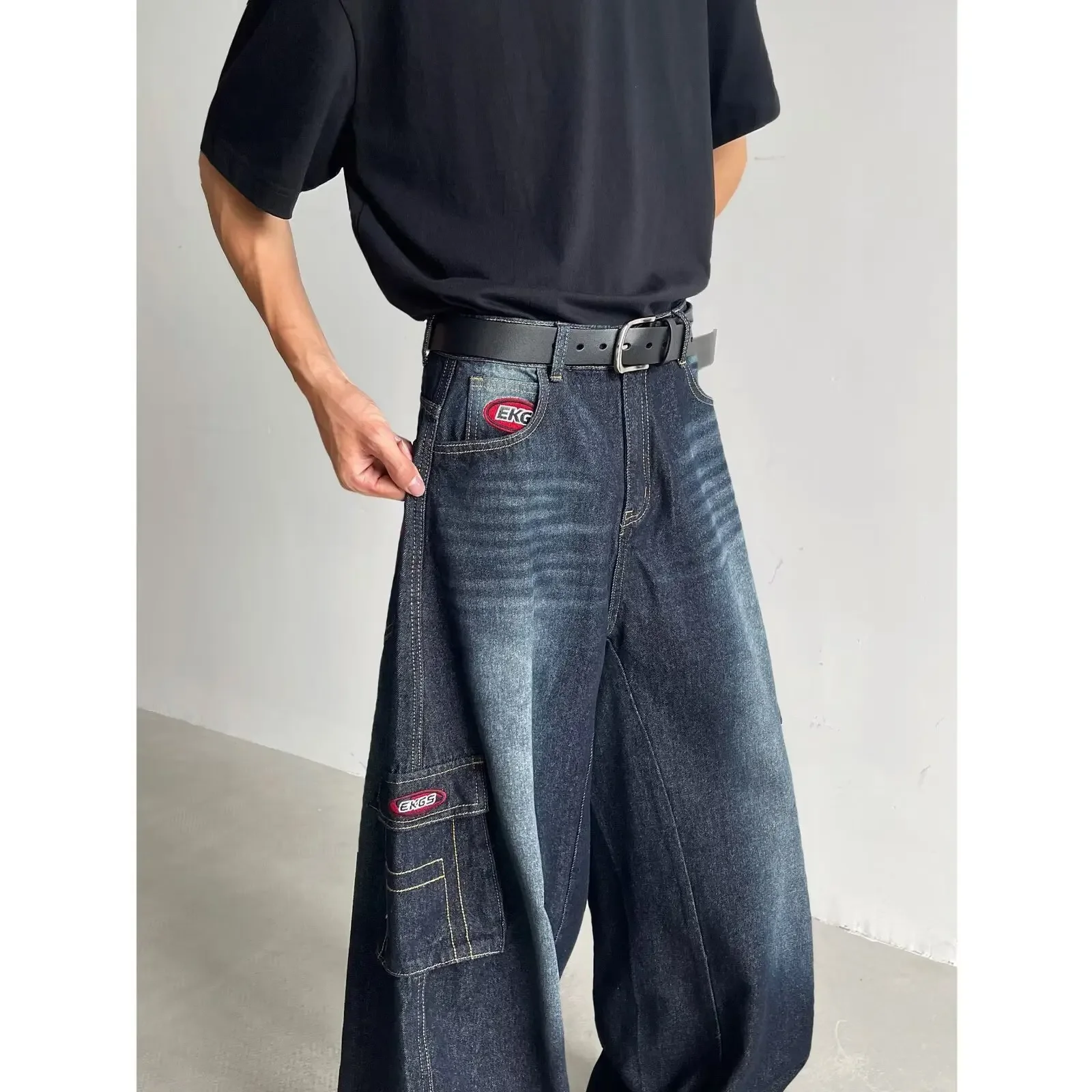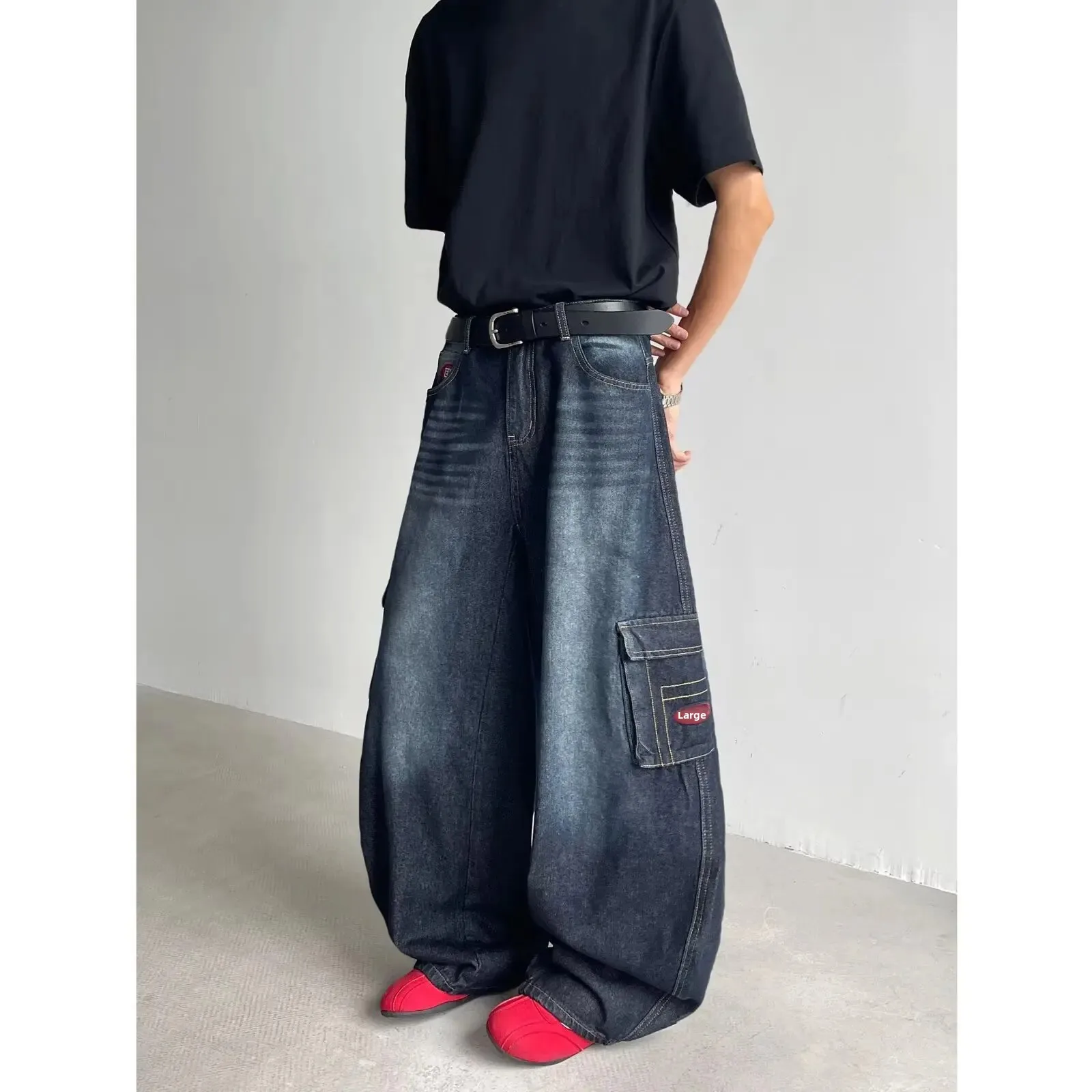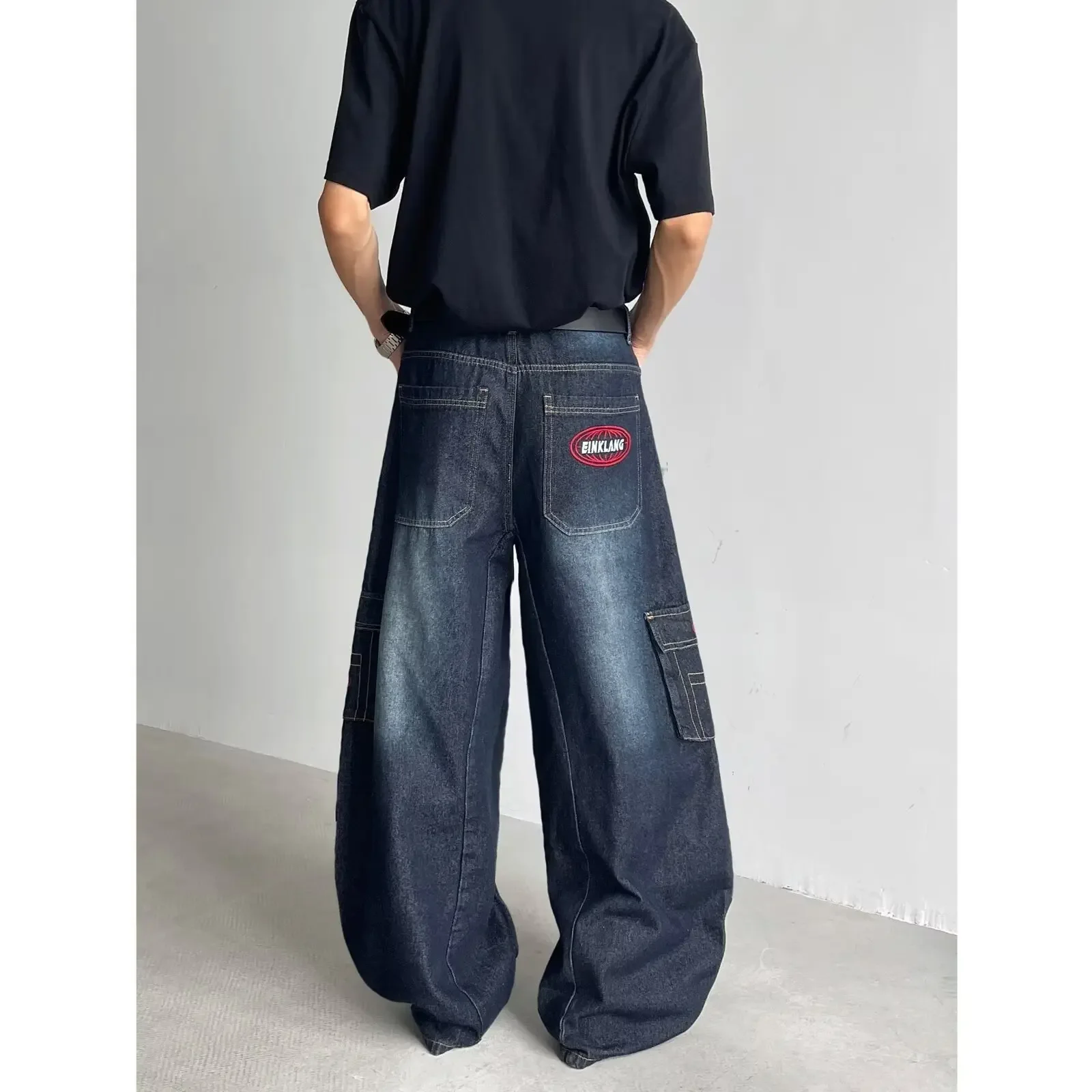 • Retro American Style : Embrace the vintage charm of American retro fashion with these dark blue multi-pocket crock pants.