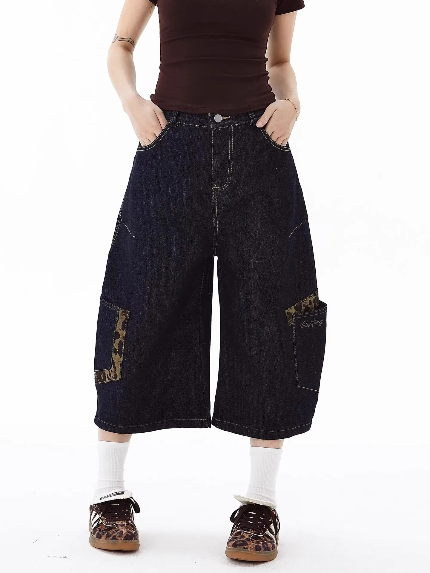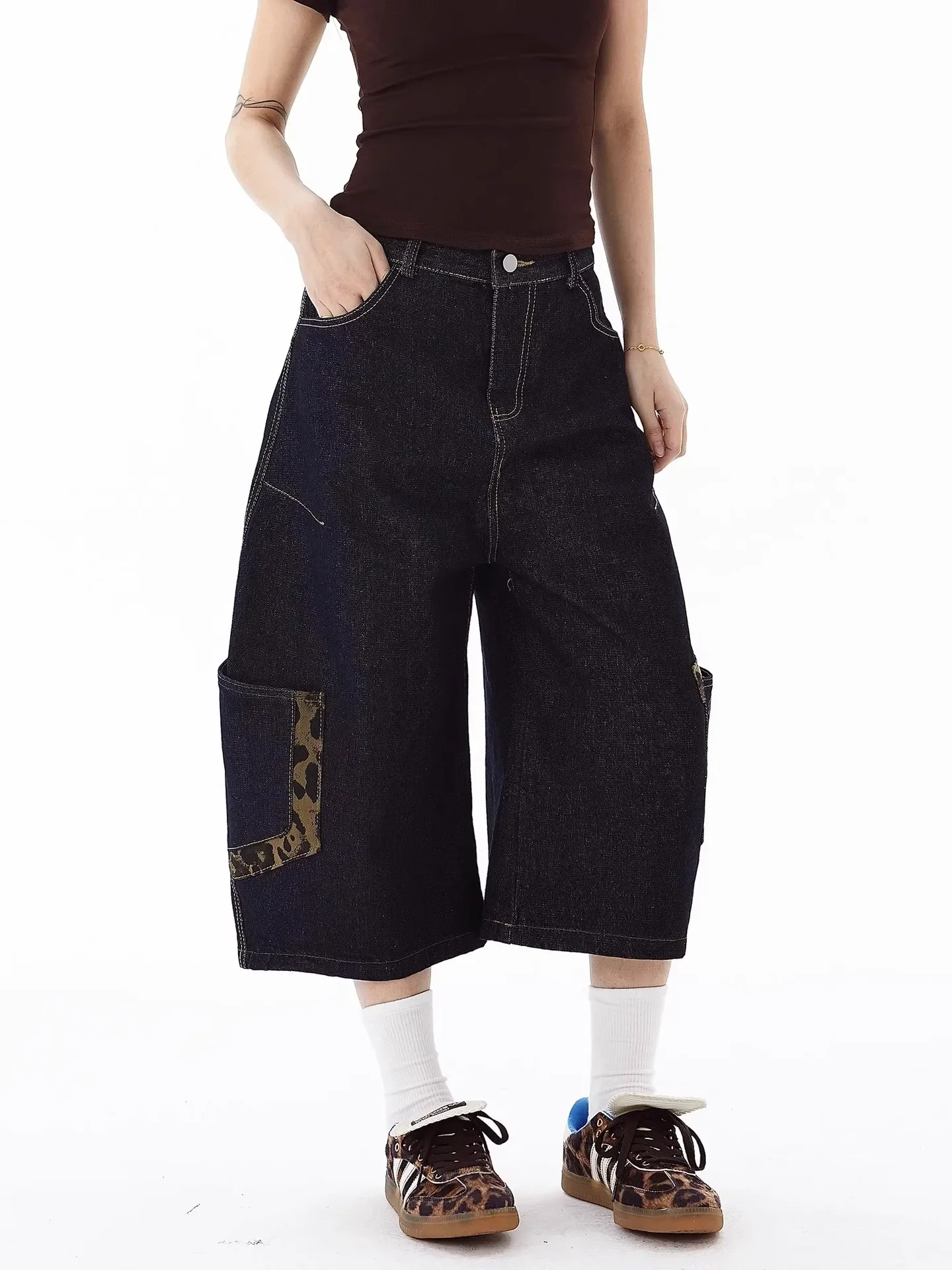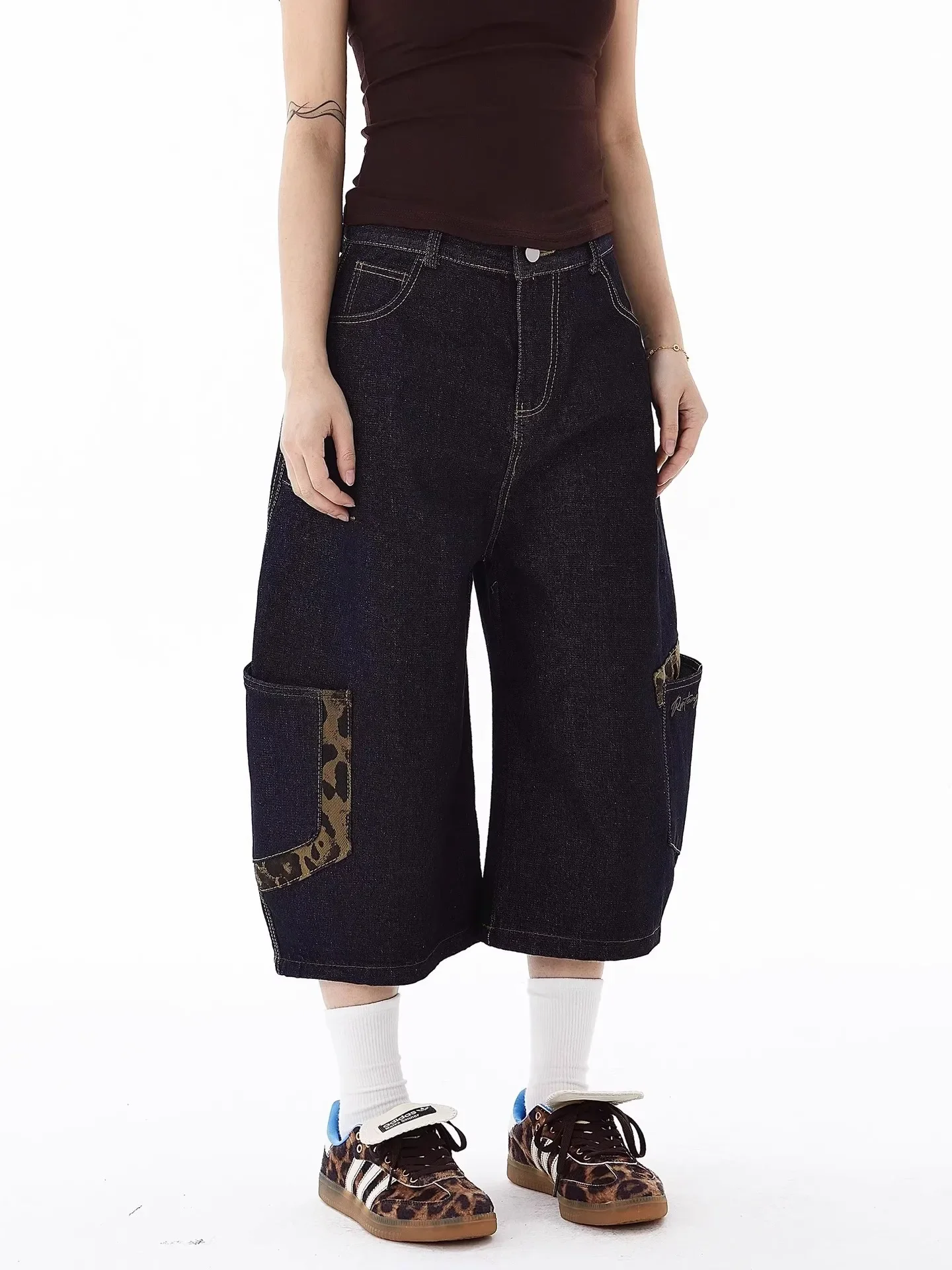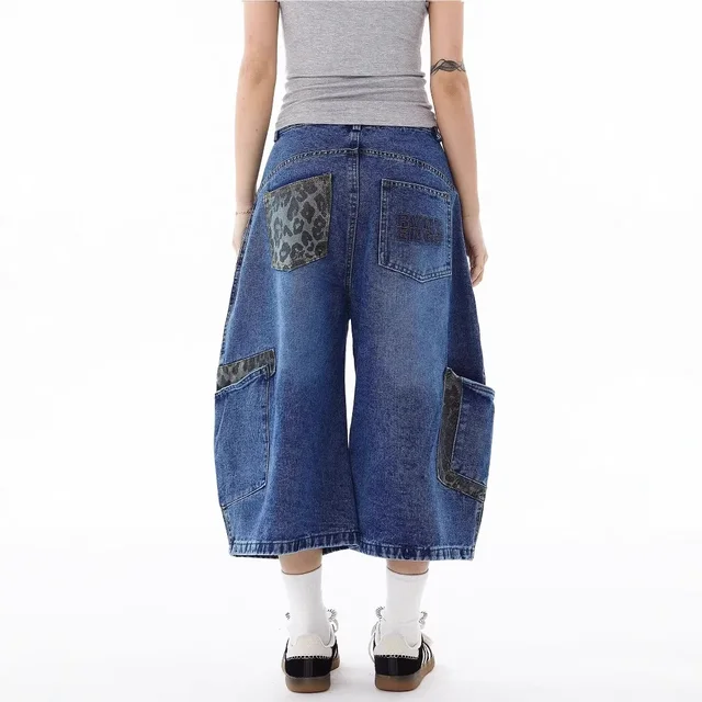 Be the first to review “American Retro Leopard Print Pocket Knife Jeans Loose Wide Leg Workwear Seven Pants Casual Style for”