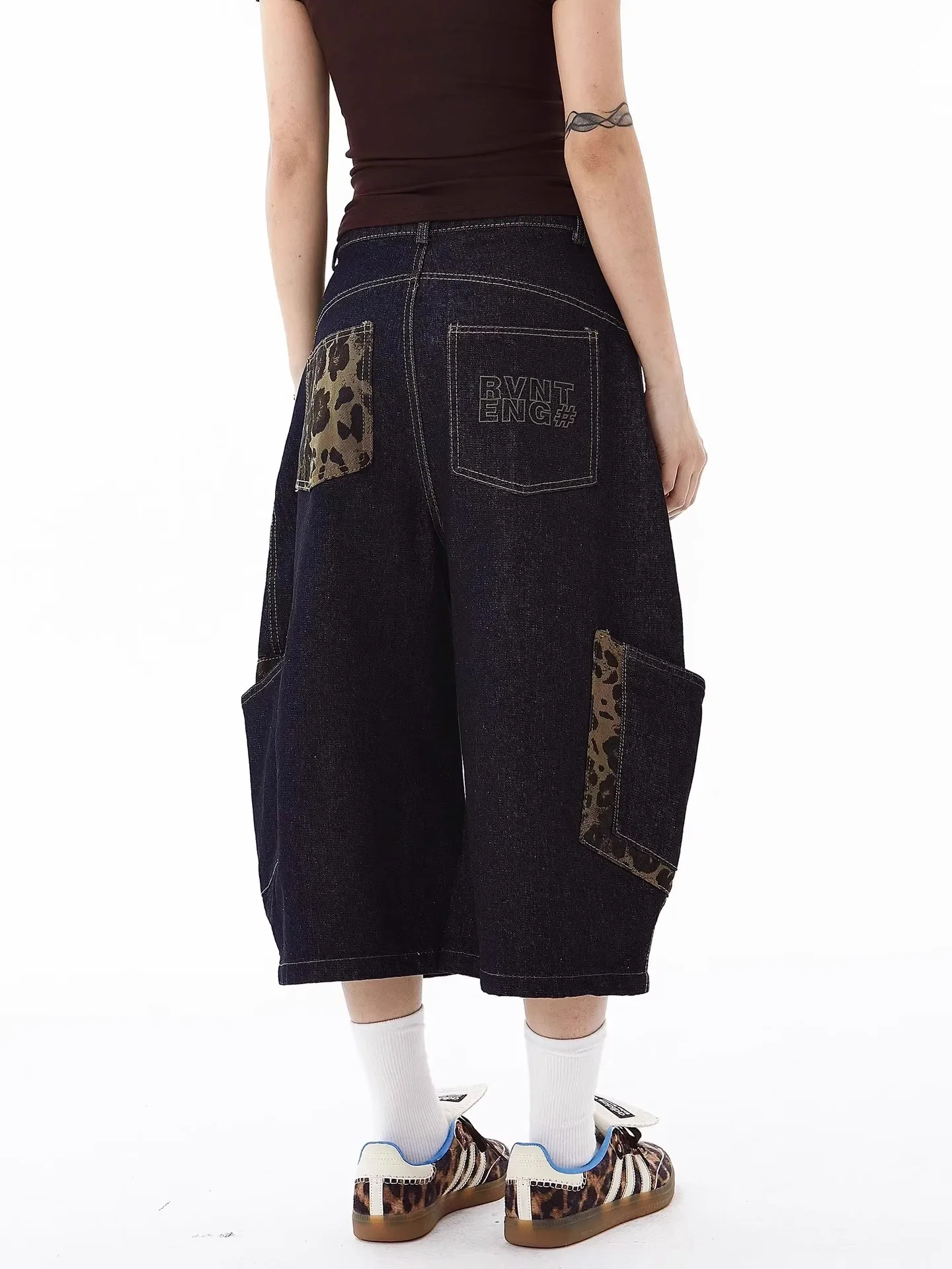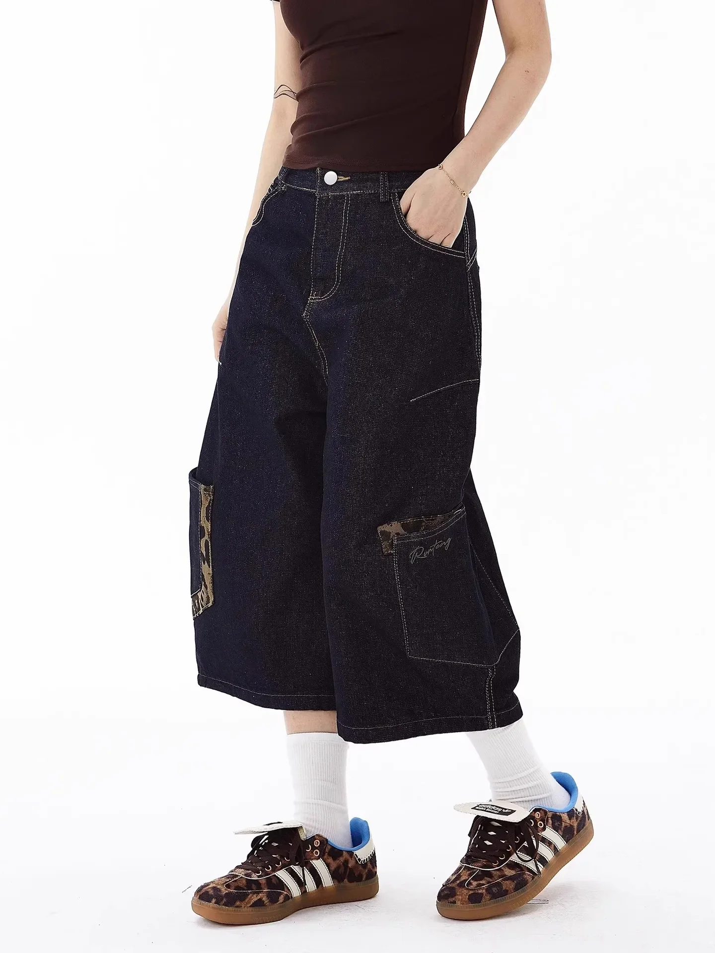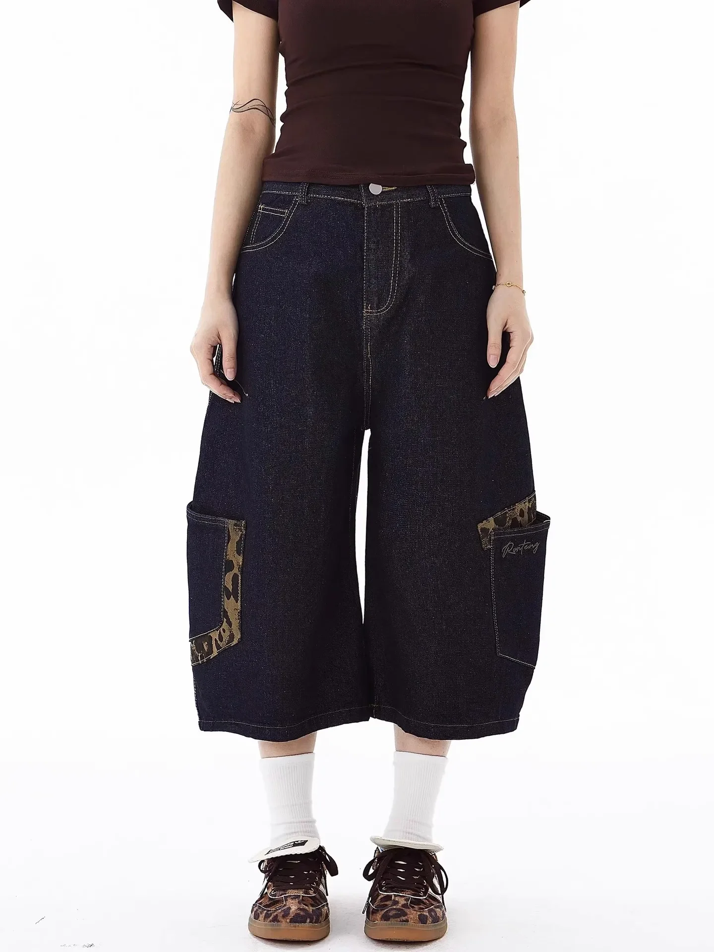 Be the first to review “American Retro Leopard Print Pocket Knife Jeans Loose Wide Leg Workwear Seven Pants Casual Style for”