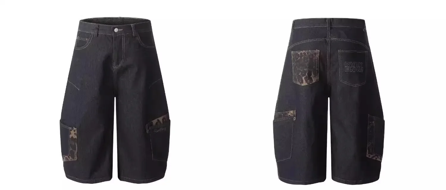 American Retro Leopard Print Pocket Knife Jeans Loose Wide Leg Workwear Seven Pants Casual Style for Men And Women