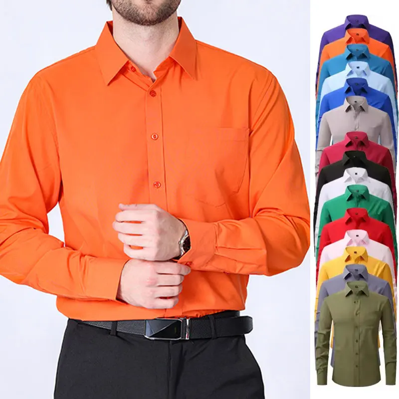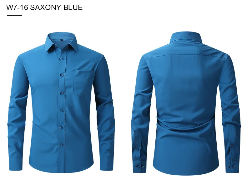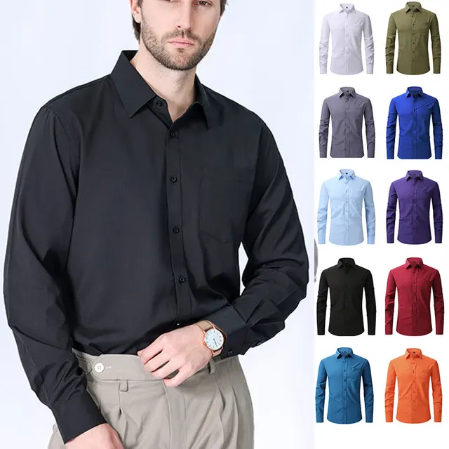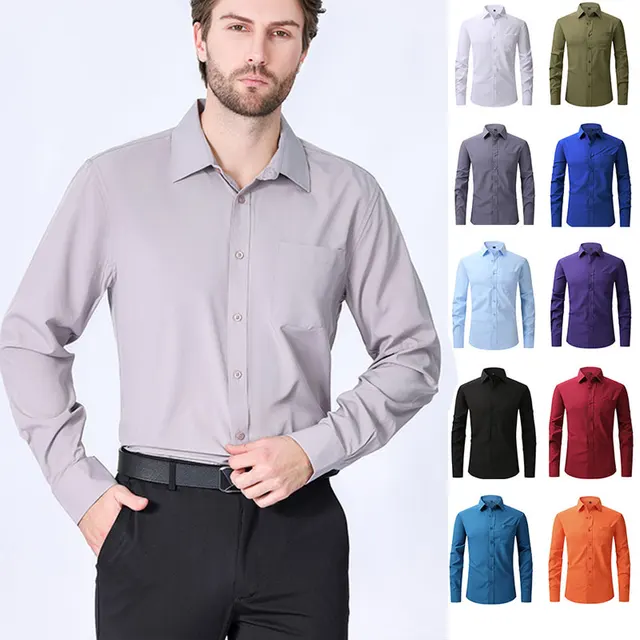 American size men’s long sleeve shirt big size spring/summer thin solid color free iron breathable