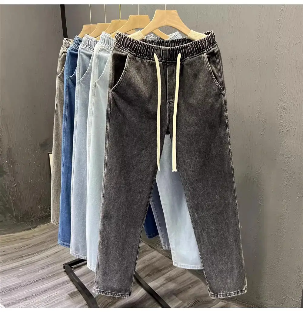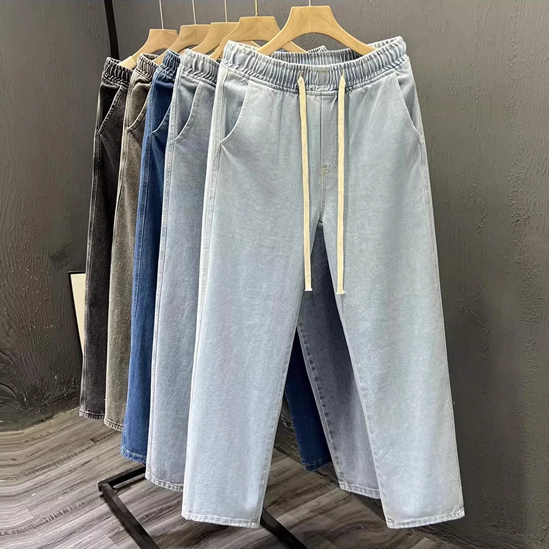 These American-style loose-fit jeans feature a wide-leg design, offering comfort and a relaxed look.