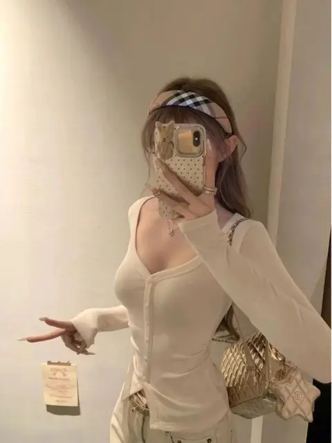 The slim fit design of this American-style V-neck button-up long-sleeve T-shirt accentuates your figure, creating a flattering silhouette for summer wear.