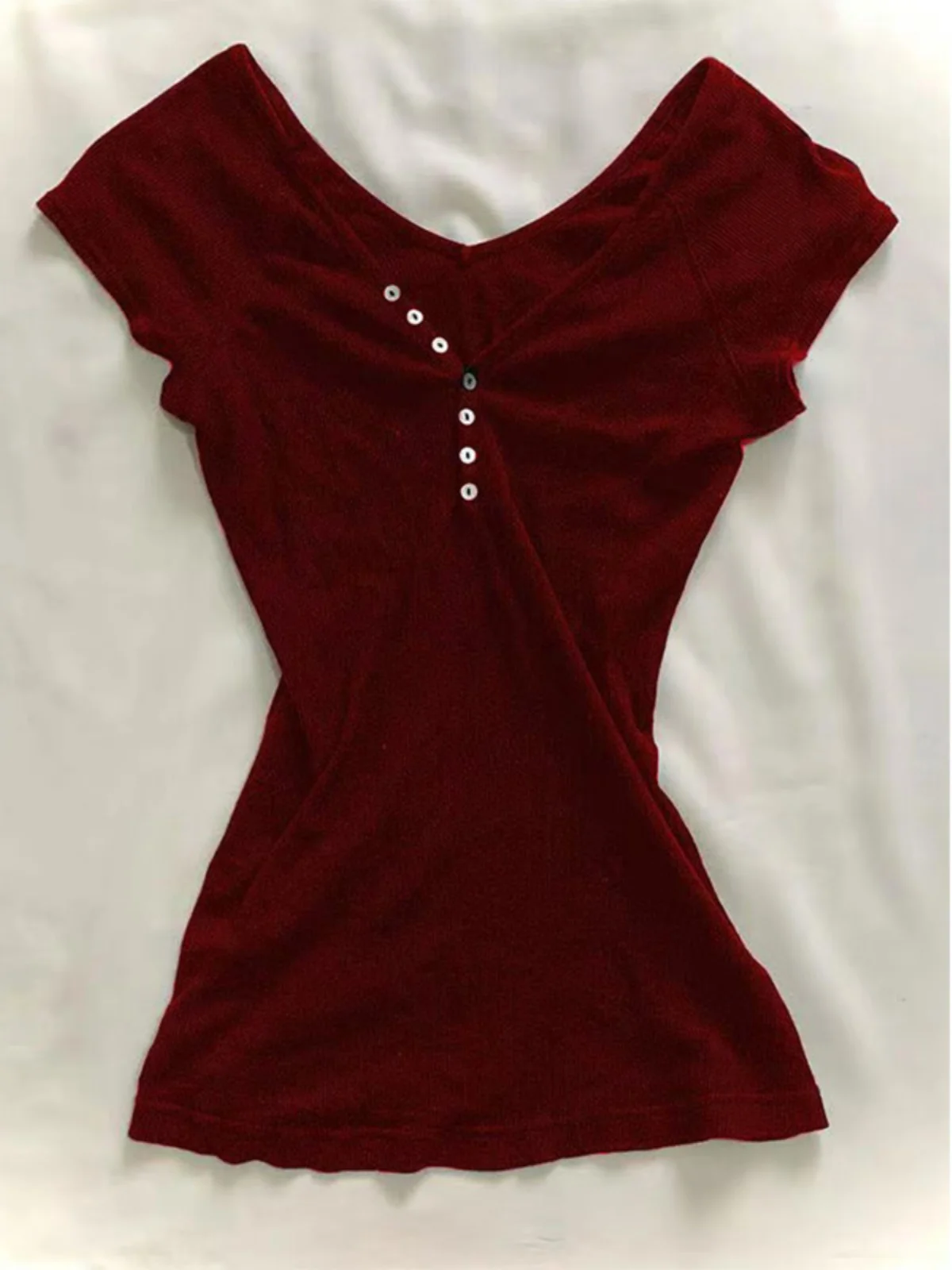The vibrant red V-neck design adds a pop of color to any outfit, making it a standout piece in your wardrobe.