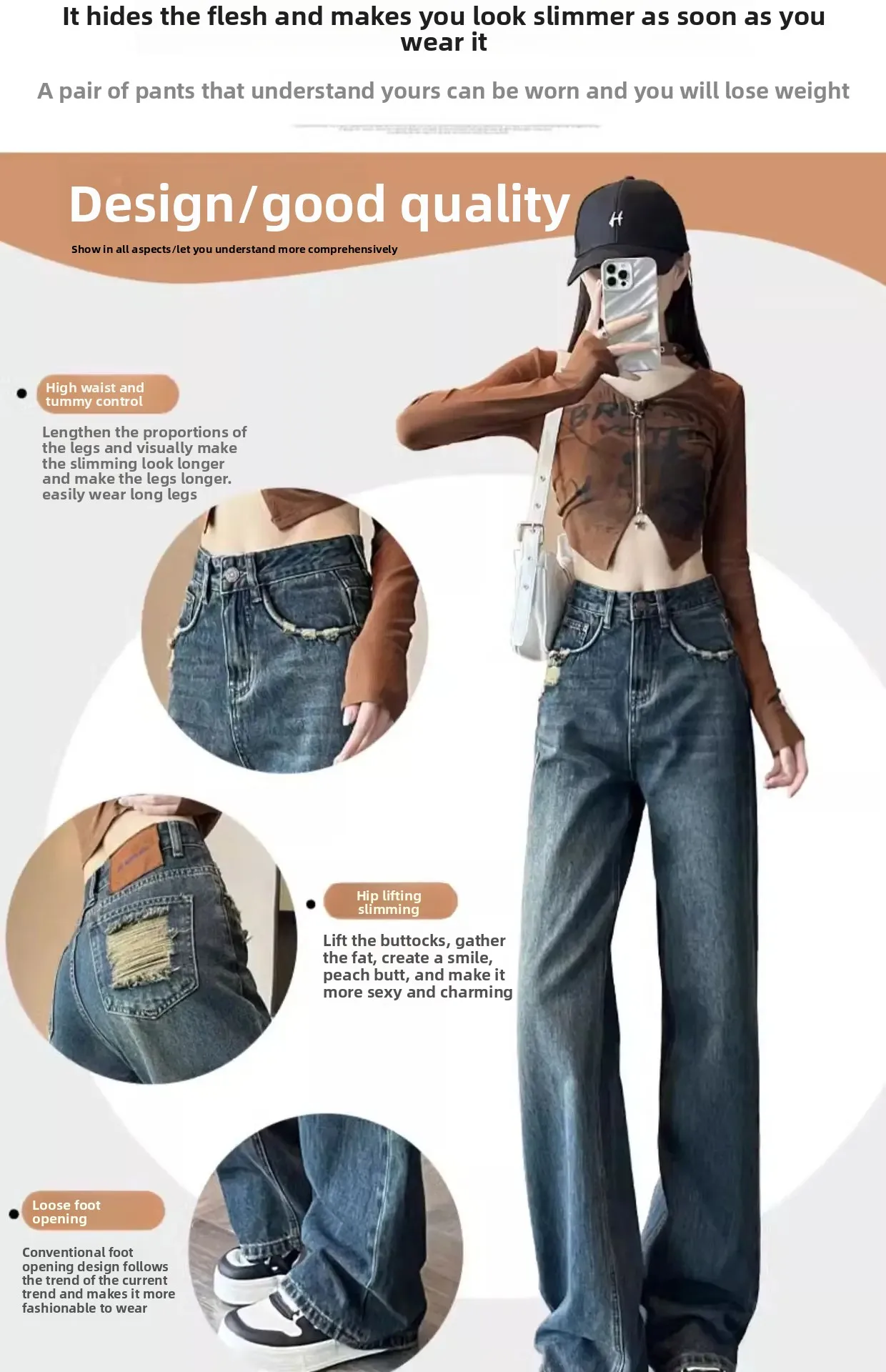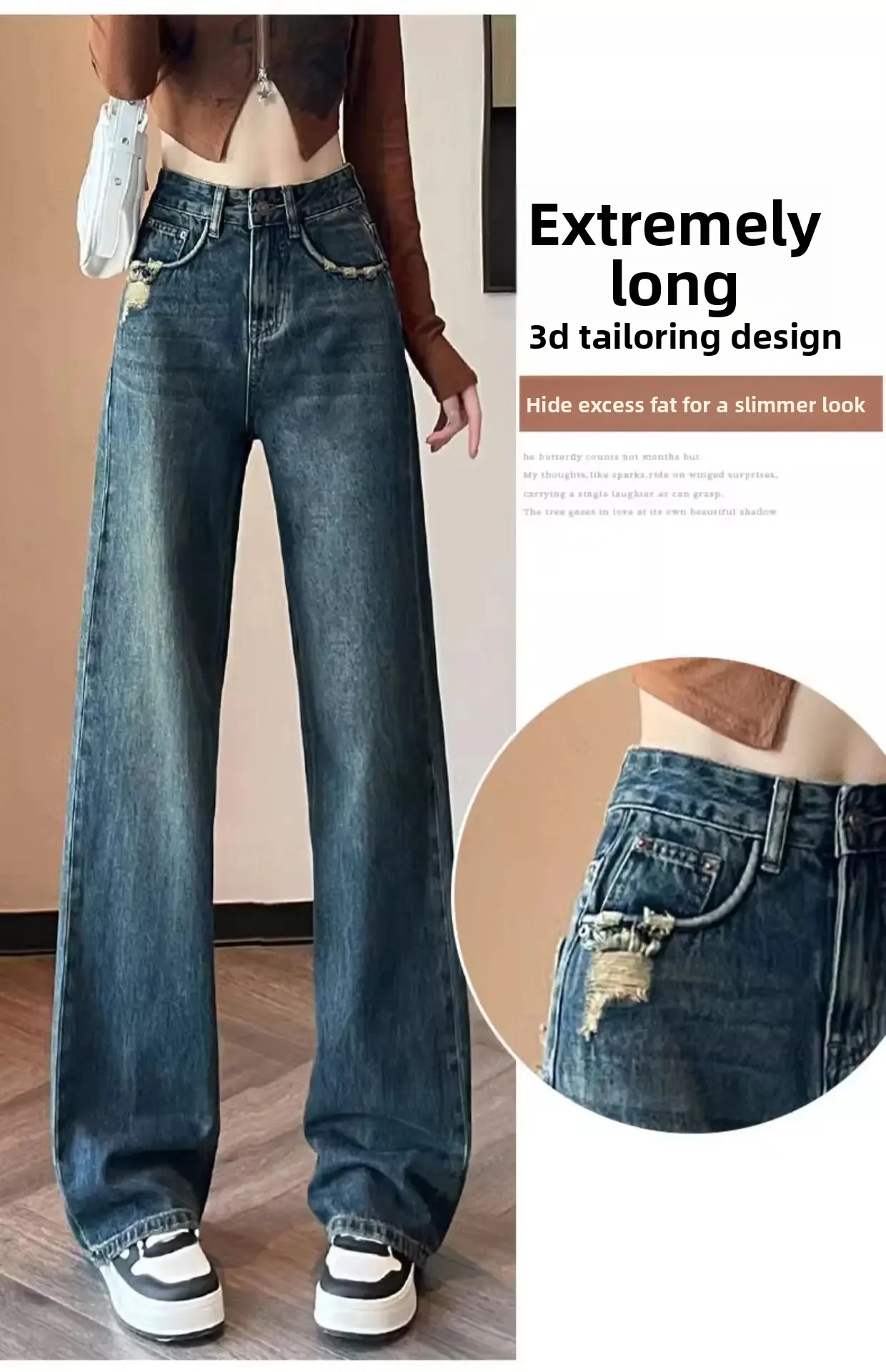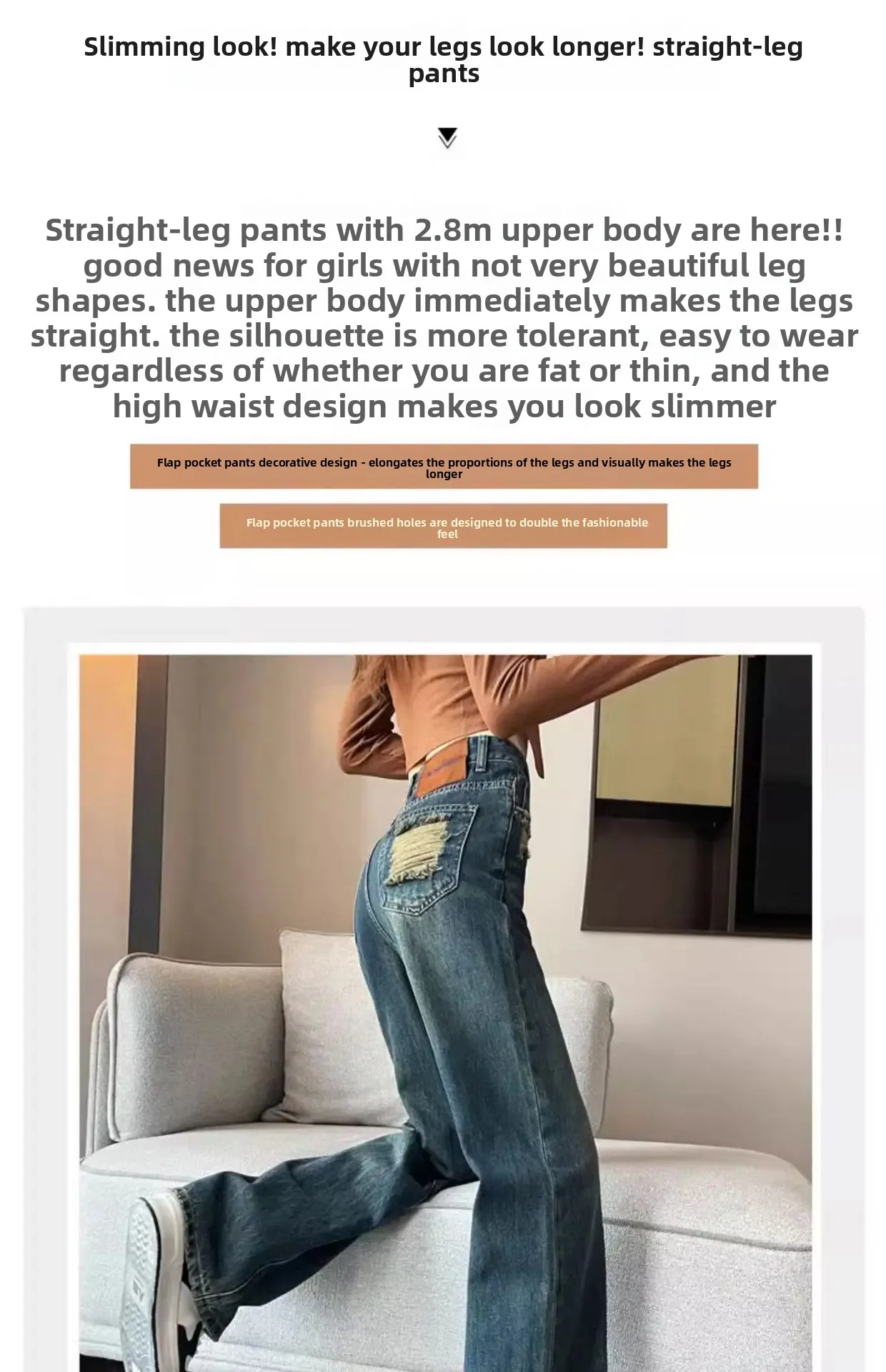 • High-Waist Design : The high-waist design of these jeans accentuates your figure, providing a slimming effect and a flattering silhouette.
