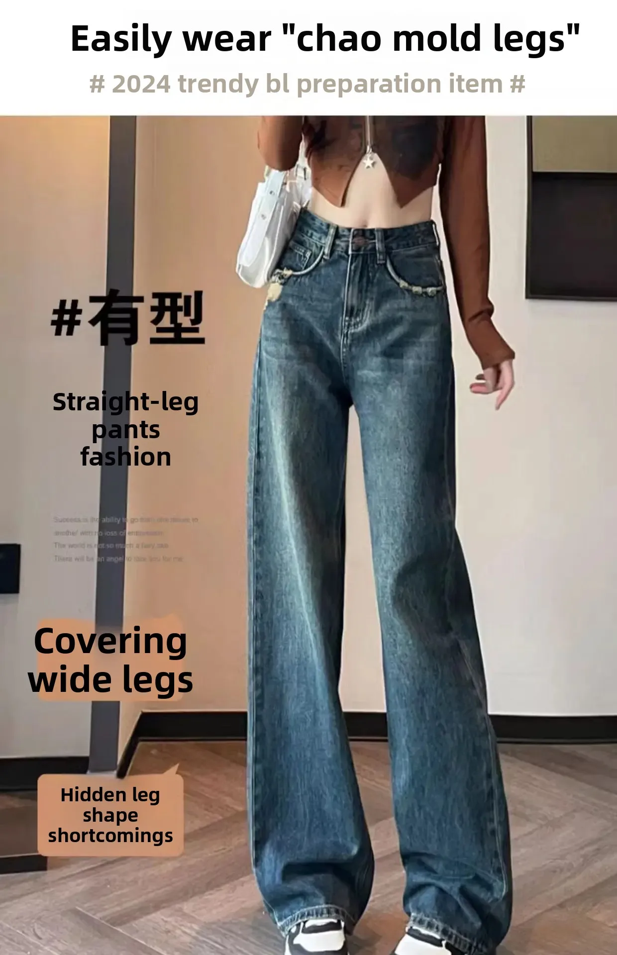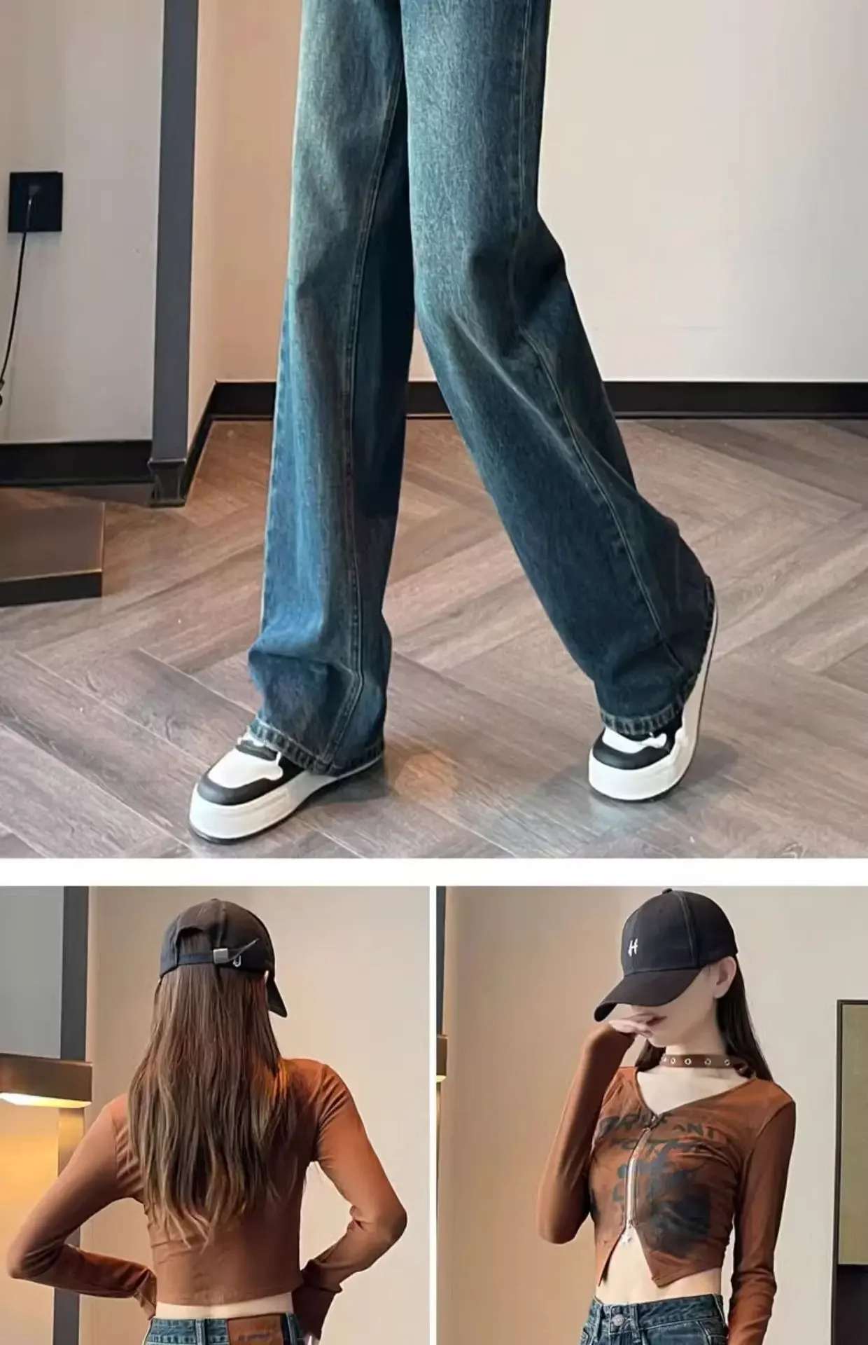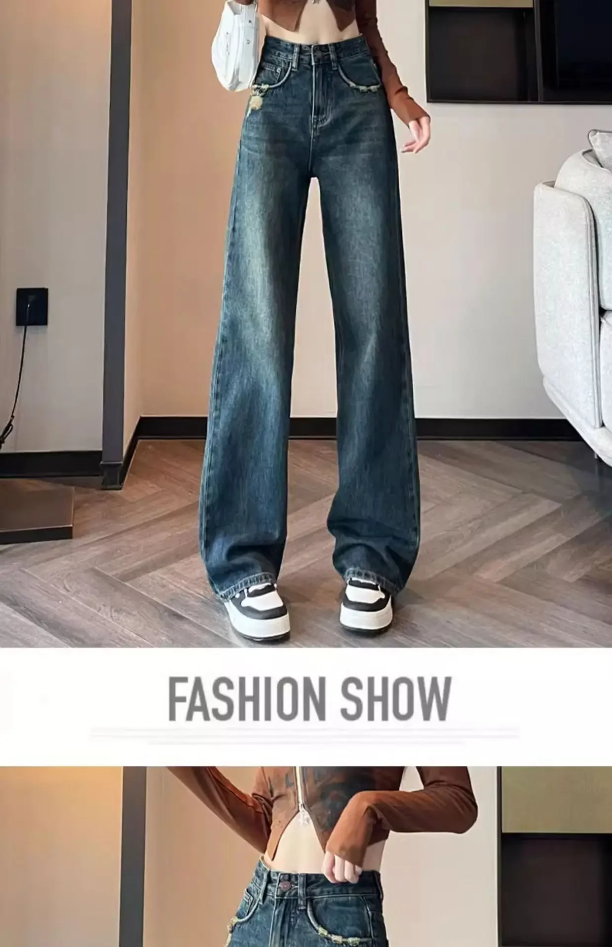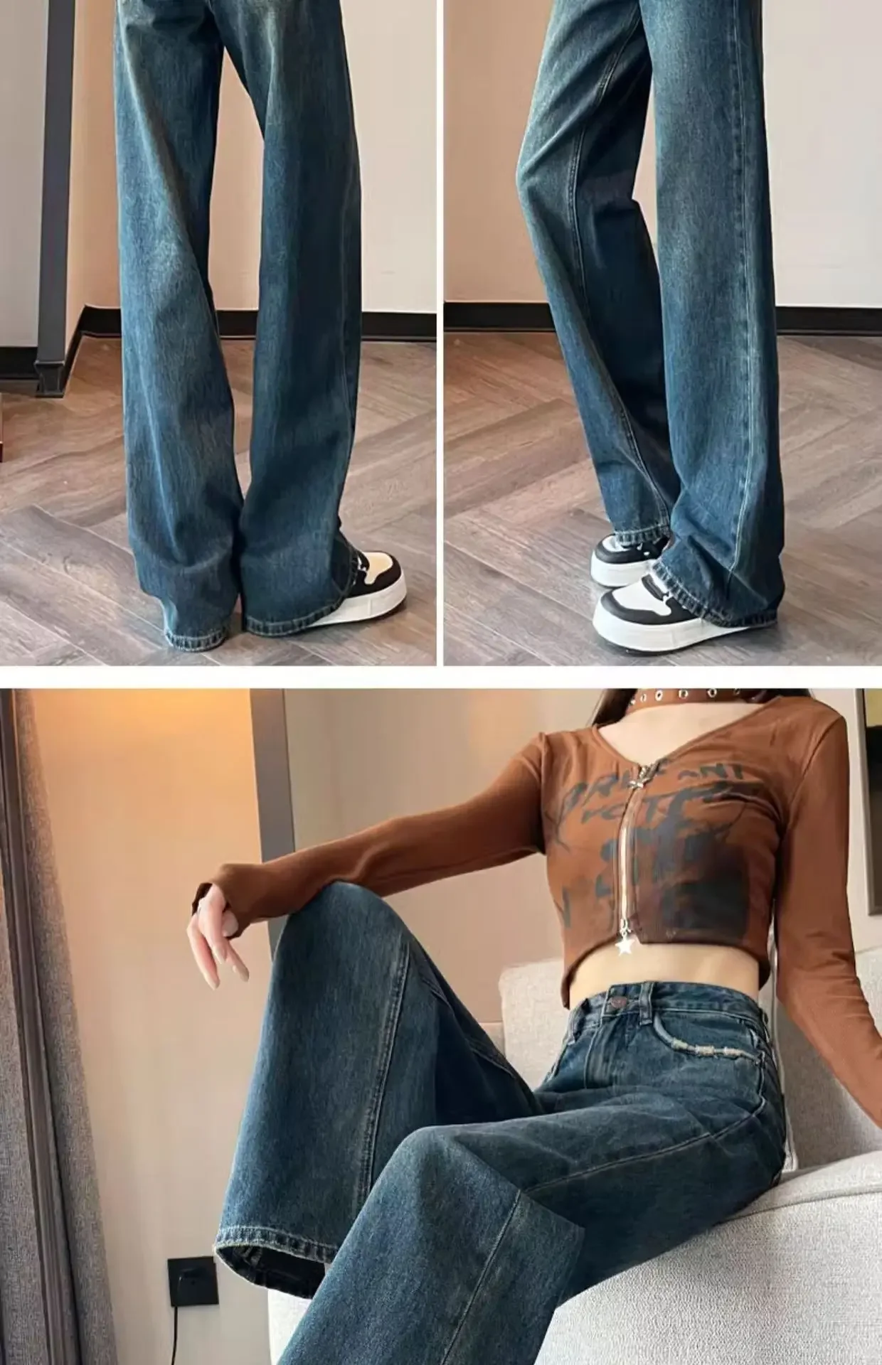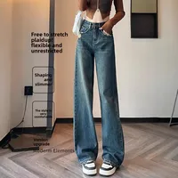 Be the first to review “American Style Light Wash Slim Wide Leg Jeans Women High Waist Slimming Drapey Loose Straight Floor-Length”